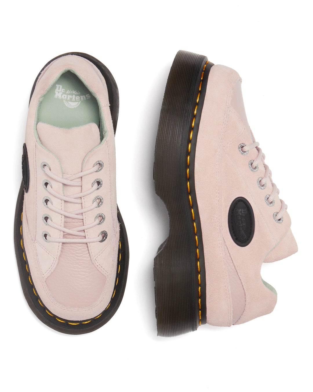 厚底のアンダーソールにはリーフ柄があしらわれ、シグネチャーであるグルーブパターンが施されており、ブランドのトレードマークであるバウンシング・ソール構造とともに、クッション性を高めるパッド入りのアンクルカラーを備え、ラバー素材のブランディングパッチがノスタルジックな印象を与えると共にアイコニックなイエローのウェルト・ステッチでドクターマーチンらしさを表現。BUZZコレクションは、90年代のブリティッシュのノスタルジックなテイストにモダンさと大胆さをミックスした新しいスタイルで、ドクターマーチンらしい、タフでキュートな女性に向けて展開します。