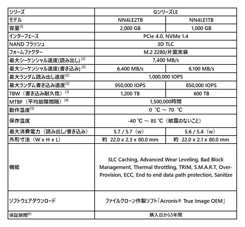 GシリーズLE製品ウェブサイト:https://www.nextorage.net/ssds/internal-ssd/nn4le/