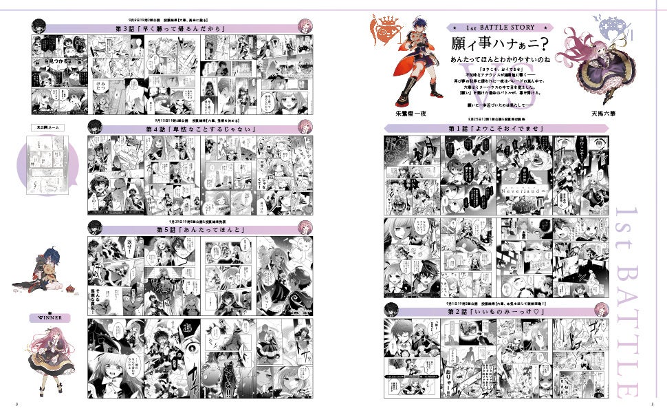 未公開ネームを含む、First season BATTLE 1on1の各バトルのマンガ1話から5話を収録。