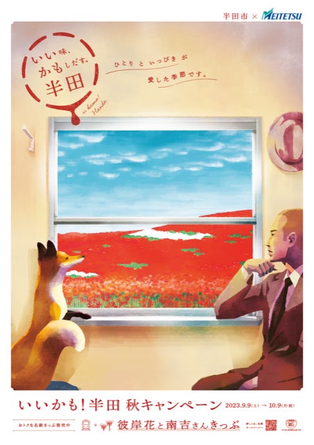 同キャンペーンでは、半田市出身の児童文学作家・新美南吉の生誕110年を記念し、半田市の秋の風物詩である彼岸花と新美南吉をイメージしたポスターやリーフレットを新たに制作するほか、新美南吉ゆかりの地を楽しめる「彼岸花と南吉さんきっぷ」を発売します。同きっぷは、名鉄電車往復割引乗車券に、「新美南吉記念館入館券」や特典と交換ができる「ごんからの贈り物券」がセットになっています。