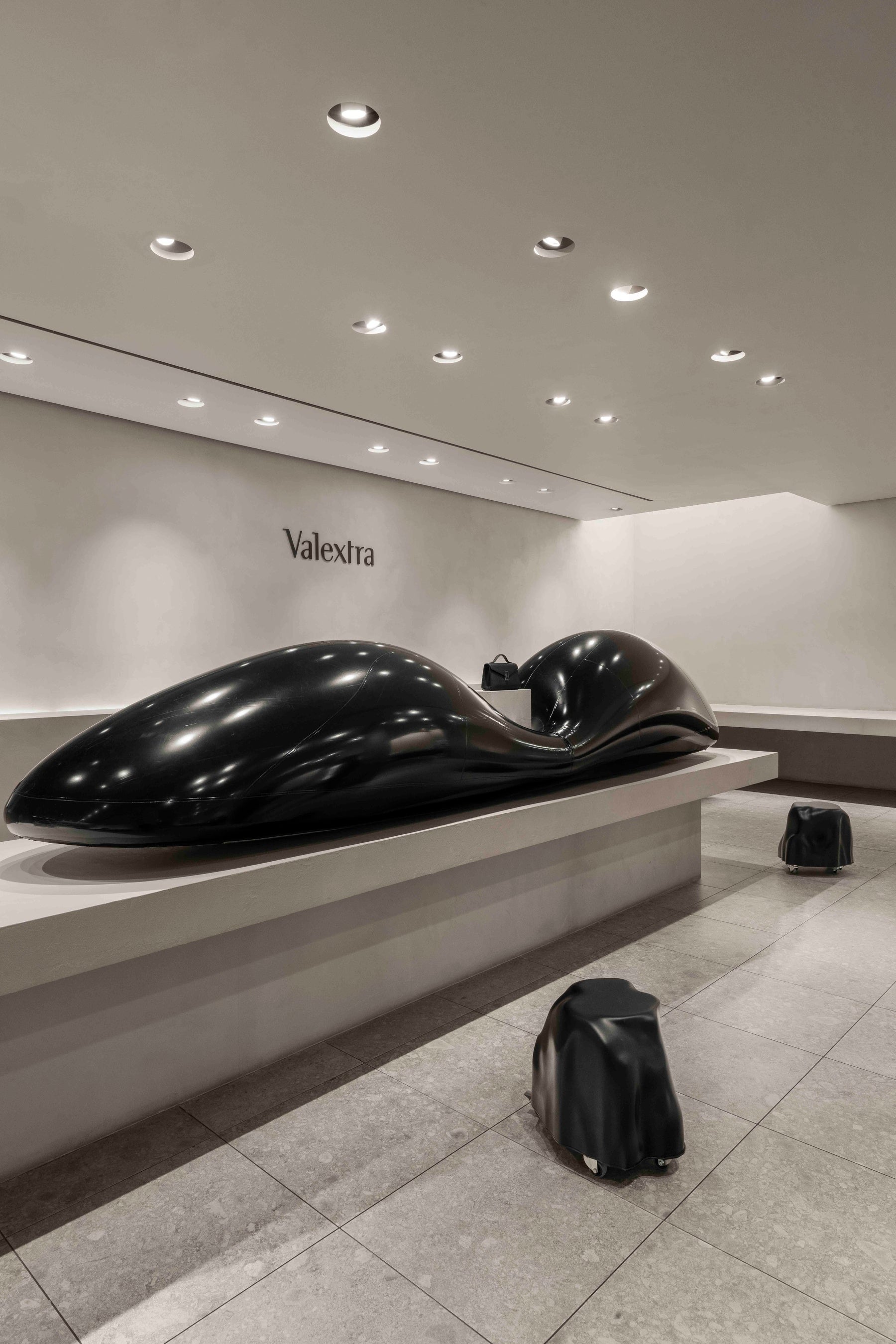ヴァレクストラを象徴する、黒ラッカー仕上げのコスタ(縁)、ペルガメーナホワイト、多層的なレザーといった要素から着想を得て、オブジェクツ・オブ・コモン・インタレストは、構造や質感、触覚性をやわらかな空間表現へと昇華させました。