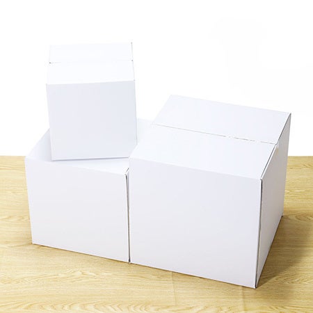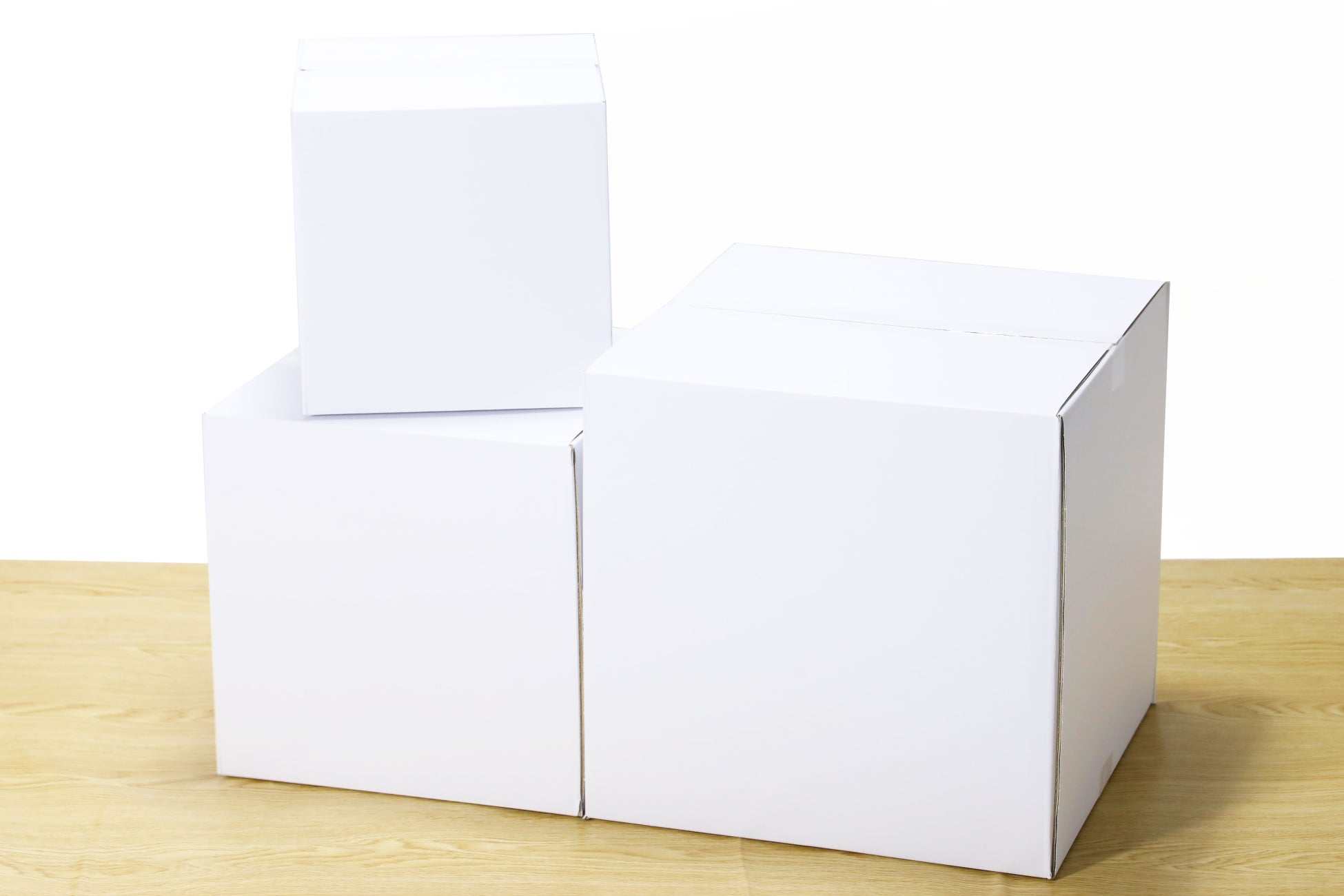 引越しや商品発送、整理整頓グッズとして便利な立方体ダンボール箱を新発売!表面ホワイトで3種類の便利なサイズが登場。