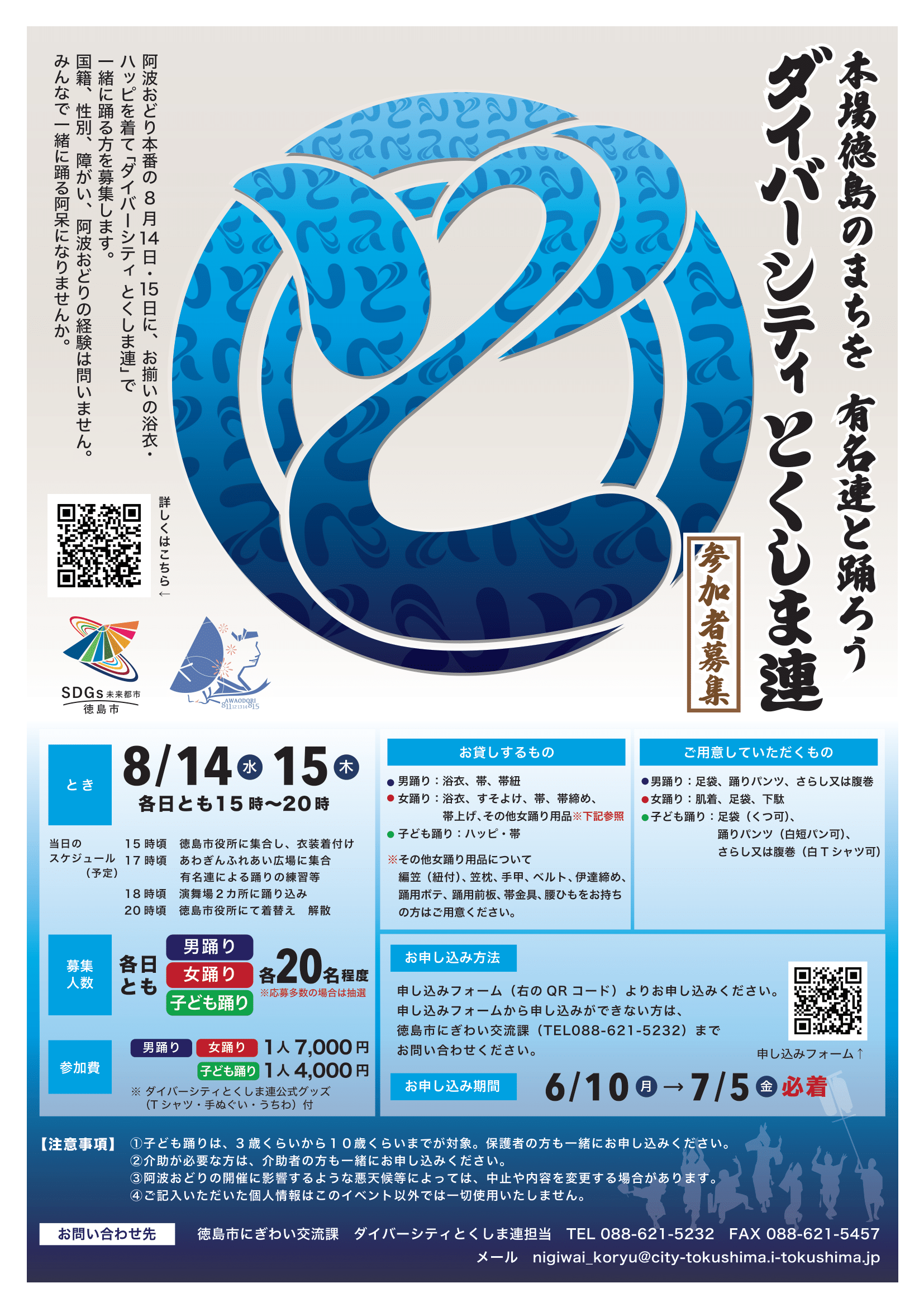 徳島市 阿波おどり「ダイバーシティとくしま連」参加者を募集