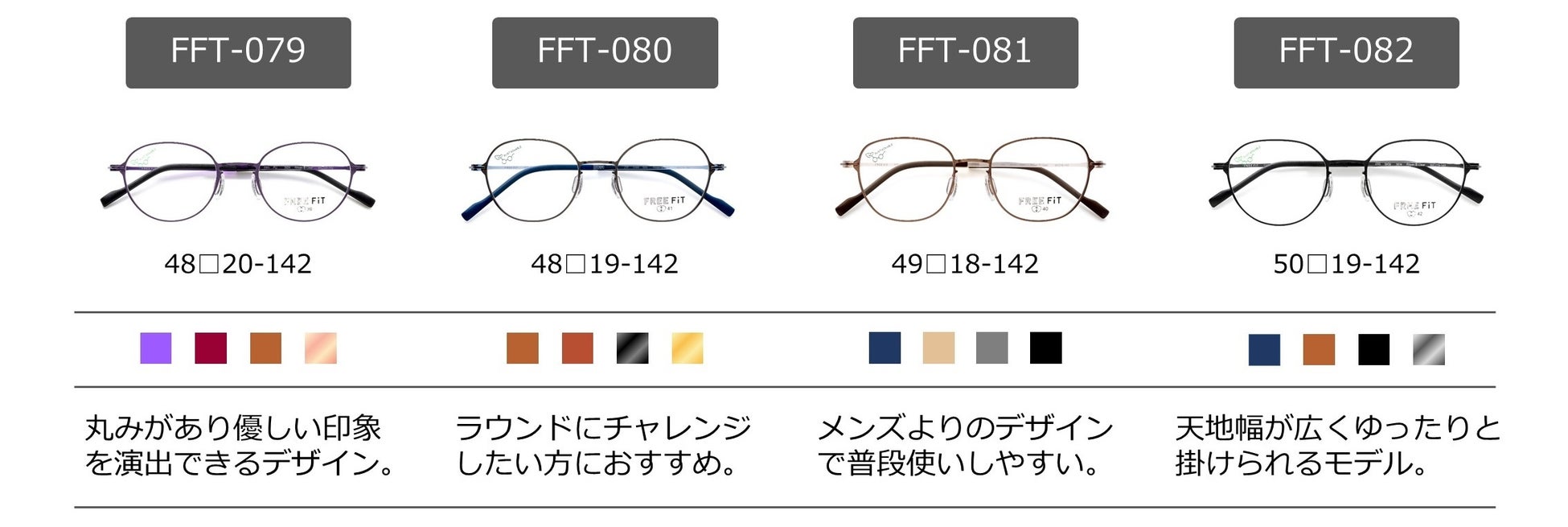 テンプルの幅をFREE FiT史上最も細い“2.1mm”に挑戦したメタルモデル。鼻パッドには“はめ込みパッド”を採用し、あらゆるパーツがすっきりと見えるよう細部にまでこだわりデザインしました。(該当商品:FFT-079~082)