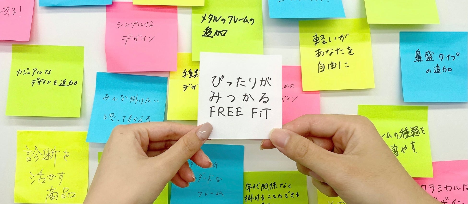 「FREE FiT」は2010年の販売開始以降、日常使いの定番メガネとして多くの方にご愛用いただき累計販売本数574万本突破する眼鏡市場人気№1のブランドです。今回、「更にお客さまに寄り添った商品をお届けしたい」という思いからリニューアルが決定。このプロジェクトには日々お客さまと直接コミュニケーションを図る店舗スタッフの存在が不可欠であるとの思いから、店舗スタッフと商品部で共同の開発プロジェクトを発足。眼鏡市場の自社工場(工場名:KING STAR、所在地:福井県鯖江市)で、メガネ製作の現場を見学し、職人の方々のこだわりなど製品への理解を深め、日頃感じている「こうしたらもっとお客さまに喜んでいただける」というポイントをまとめたリニューアル案を出し合いました。その中で「全年代に向けたデザイン」「楽しく選べる多彩なバリエーション」という意見が多く、【年齢・性別関係なく、ぴったりな商品が見つかるブランド】というリニューアルの方向性が決定。新モデルは「FREE FiT=樹脂フレーム」という固定概念を払拭した「メタルフレーム」をはじめ「メンズモデル」「ユニバーサルモデル」が登場します。