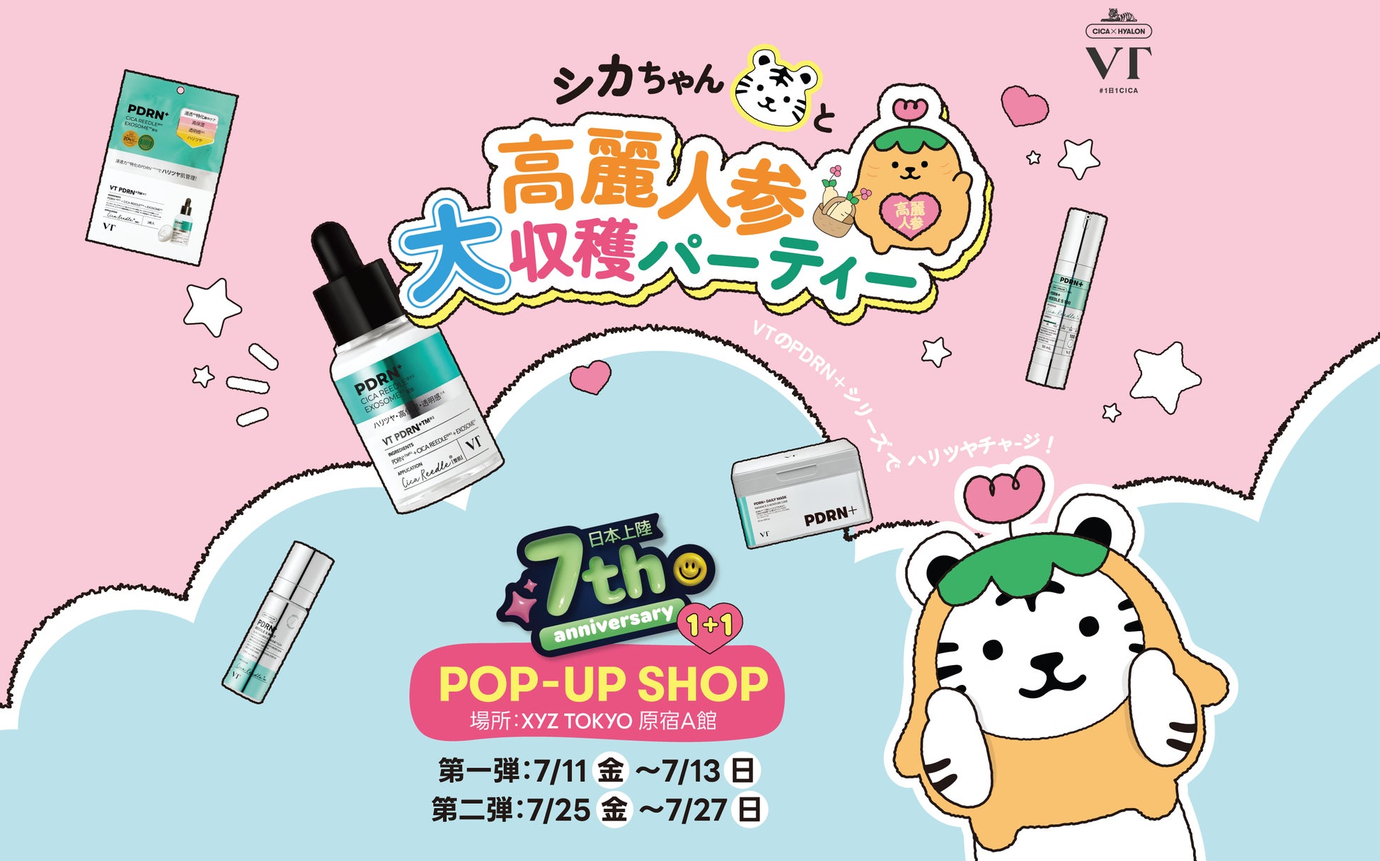 韓国発のスキンケアブランド「VT COSMETICS(ブイティーコスメティックス)」は、日本上陸7周年を記念し、原宿にて期間限定のPOPUPイベント「VTの直売所が原宿に?!高麗人参大収穫パーティー」を開催いたします。