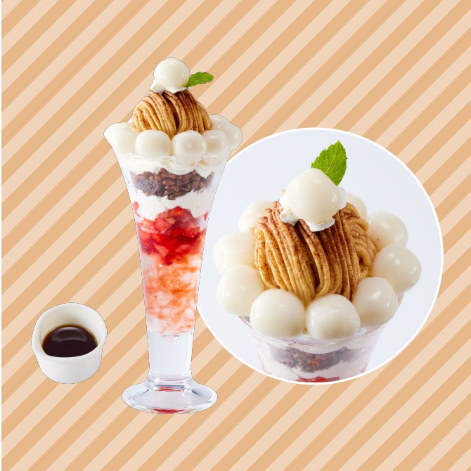 亜久津の好物モンブランを、大胆にトップに盛り付けたパフェです。作中で亜久津がテニスボールを10球打ち返すシーンを、10個の白玉を並べることで表現しています。また、亜久津の血が滲むほど激しい試合シーンをストロベリーソースで表現しました。別添えの黒糖シロップをお好みでかけてお召し上がりください。