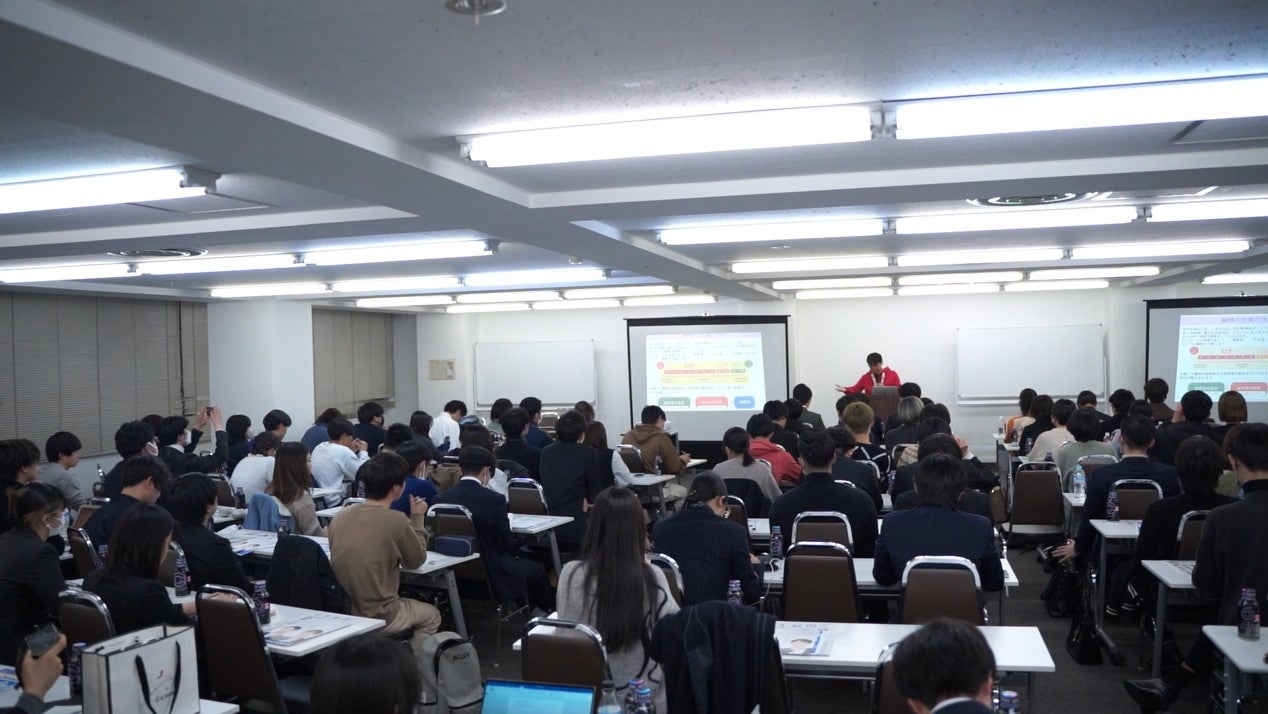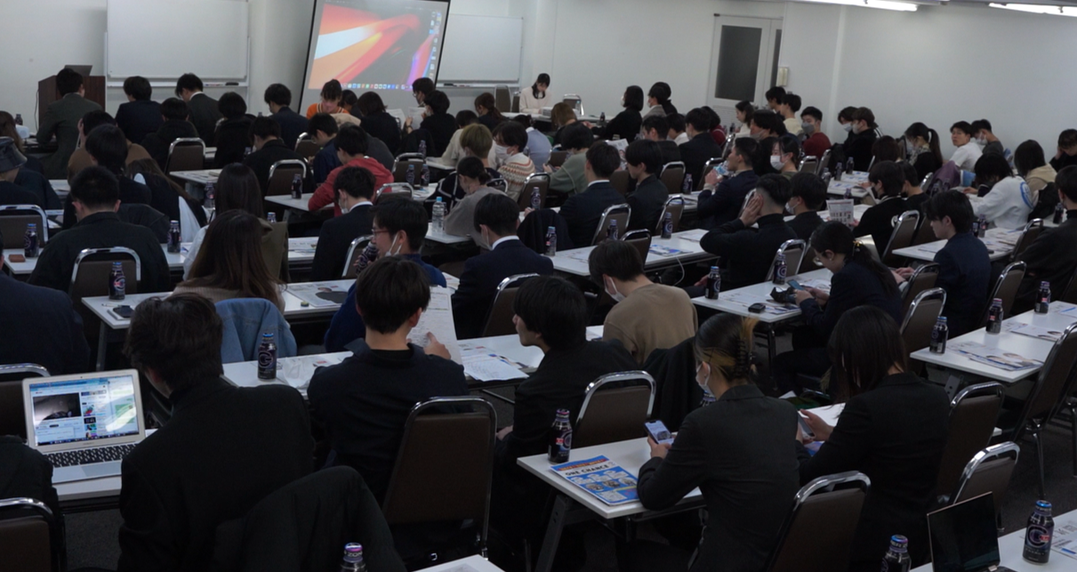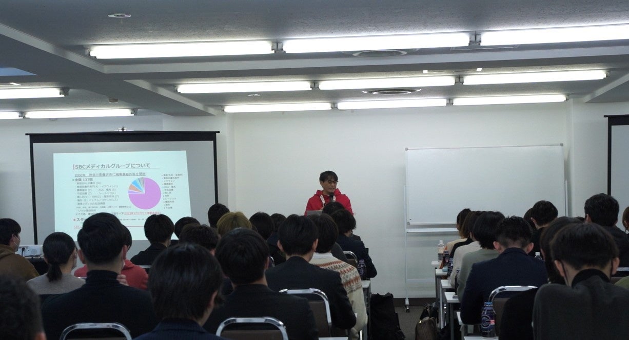 2023年3月3日(金)に開催されたイベントには、約150名の学生が集まり、SBCメディカルグループ(湘南美容クリニック)代表である相川佳之の講演会や、学生同士の交流を深めるための懇親会が行われました。