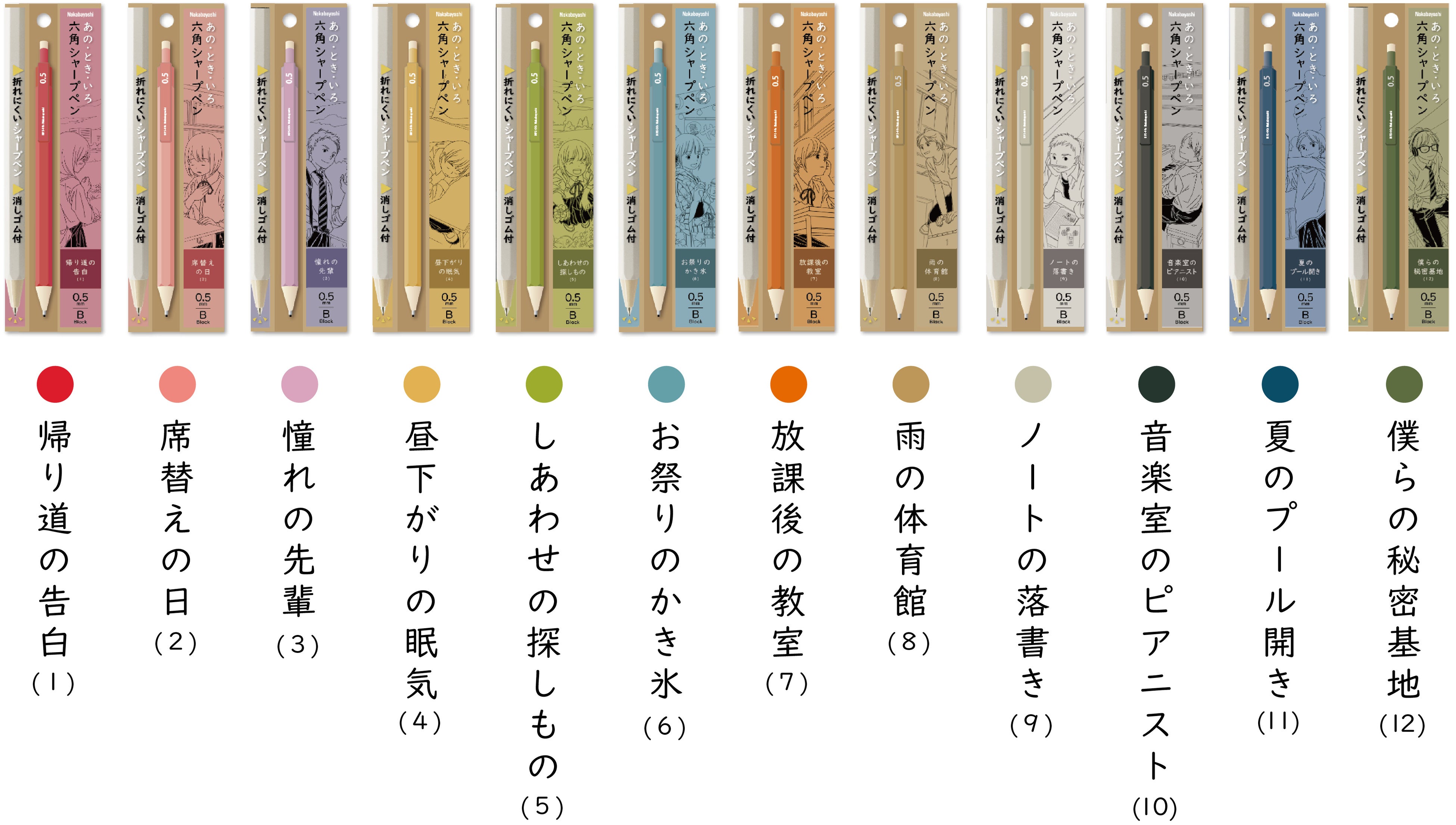 製品名 | あの・とき・いろ 六角シャープペンシル(0.3mm/0.5mm/0.9mm) (0.3mm、0.9mmは(9)(10)のみラインアップ) |