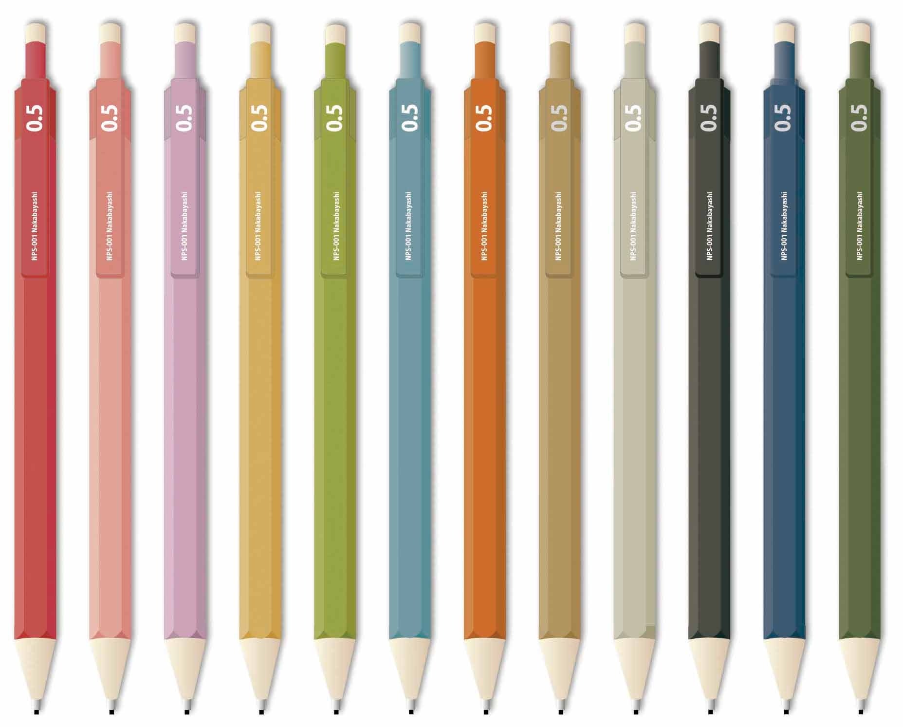 鉛筆のようなデザインのシャープペンシルです。鉛筆径(7mm)に近づけた8mmの軸径を採用して握りやすさを実現しています。書きやすさに加え、どこか懐かしい使い心地を味わえます。定番の芯径0.5mmは全色、手帳などの細かな書き込みにも適した0.3mm、鉛筆に近い描き心地の0.9mmは2カラー(9、10)限定でラインアップしています。