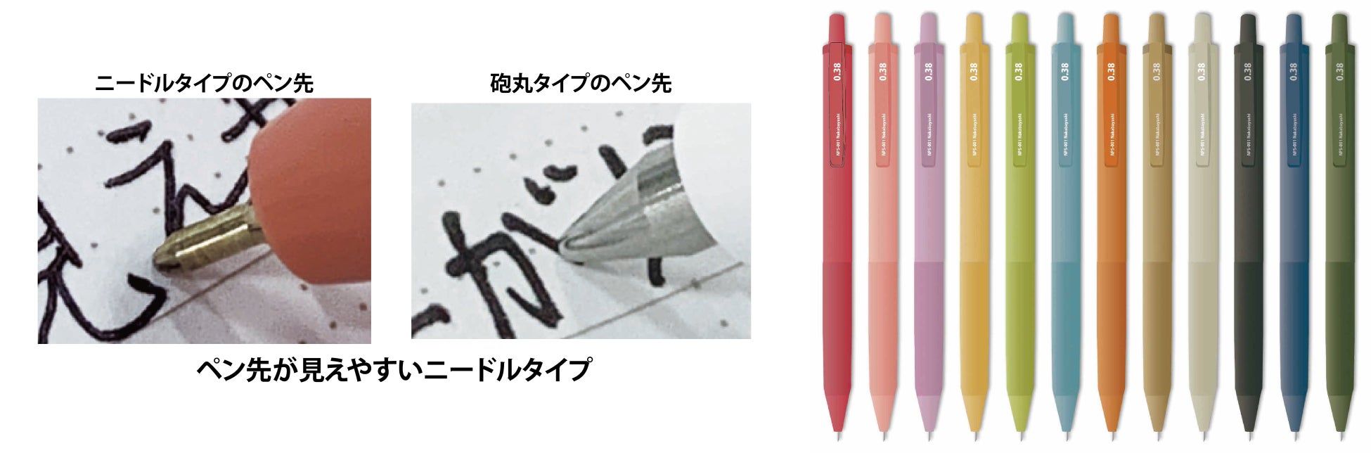 粘度インクでなめらかな描き心地の油性ボールペンです。0.38mmの超極細ペン先で、文字を書く時にペン先が見えやすいニードルタイプを採用しています。速乾性で文字がにじみにくい仕様なので手帳など細かなスペースへの書き込みにも最適です。