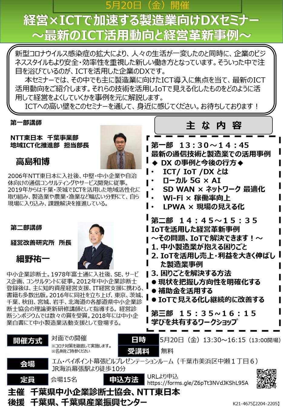 千葉県中小企業診断士協会とNTT東日本が連携!「経営×ICTで加速する製造業向けDXセミナー」を開催します~ 経営×ICTで中小企業のDXを支援 ~
