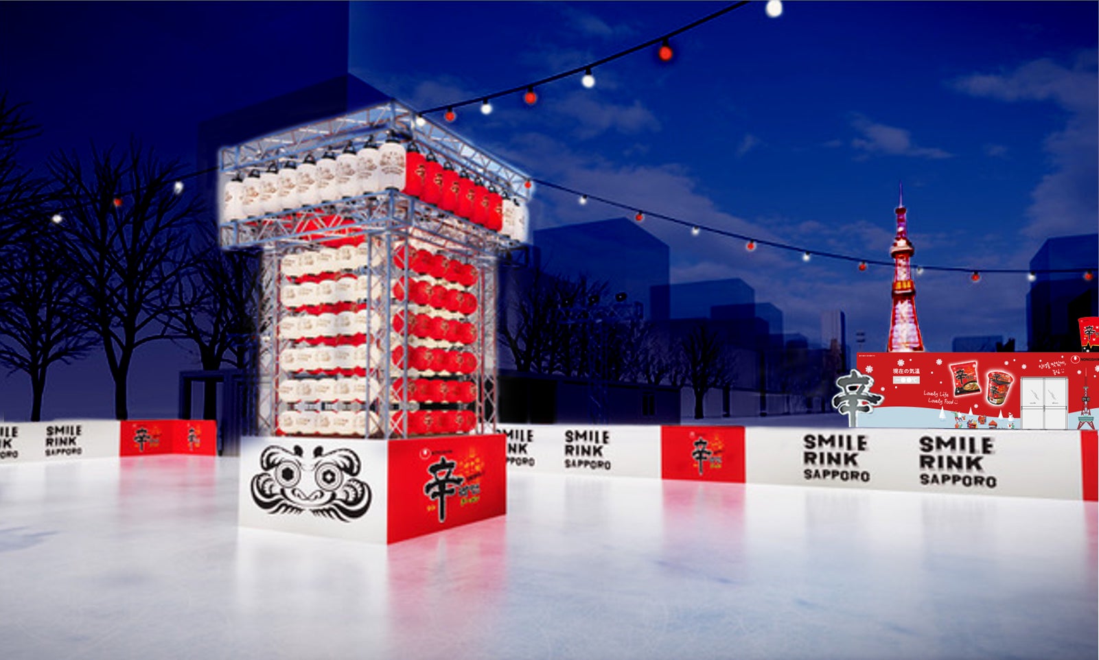 韓国の即席麺を代表する「辛ラーメン」は、季節を問わず年間通じてお召し上がりいただける商品になってますが、その中でも特に寒い時期においては、より一層のご好評をいただいています。そんな辛ラーメンの魅力を伝えるため、2024年11月から2025年1月まで、期間限定で雪が降り注ぐ冬季限定パッケージの辛ラーメンを展開してきました。その発売を記念し、日本を代表する冬の一大イベント「さっぽろ雪まつり」(北海道札幌市)にて同時開催されるスケートリンク「スマイルリンクさっぽろ」への初協賛が