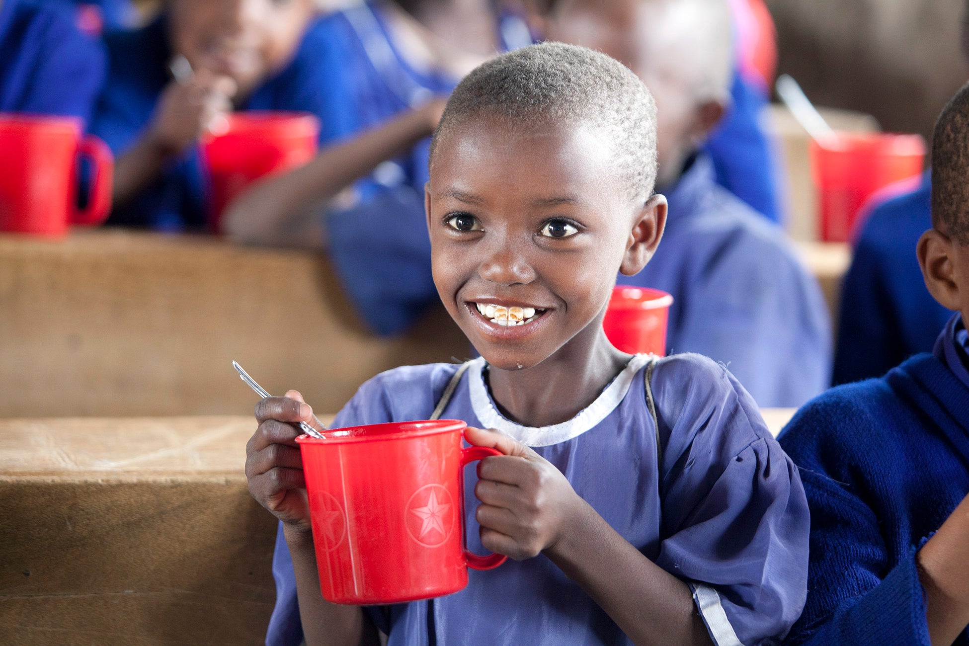 毎日のお買物で学校給食を支援できる、レッドカップキャンペーン。2011年開始以来、累計約2,800万人以上の子どもたちに学校給食を届けました(2023年末時点)。国連WFPが給食を入れる容器として使っている赤いカップを目印に、レッドカップキャンペーンに賛同する企業からキャンペーンマークのついた商品が発売されています。対象商品を購入すると、その売り上げの一部が企業から寄付されます。