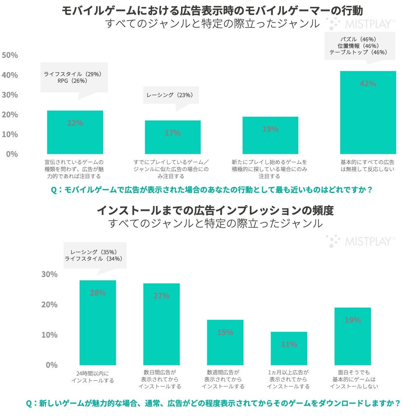 この結果はMistplayによっても裏付けされています。同社の調査によると、ゲーマーは主に報酬とインセンティブ(42%)、ゲームジャンルとの関連性(40%)、魅力的なゲームプレイ(38%)によって広告に興味を持ち、新しいゲームをインストールするように動機付けされています。ただし、プレイヤーの約50%は「広告が多すぎる」ことを離脱の最大の理由として挙げており、14%が広告を見た後に離脱し、別のゲームをインストールしています。広告のエンゲージメントを向上させ、離脱率を下げるには、広告に特別なインセンティブや関連するコンテンツを組み込むことが推奨されます。これによって、プレイヤーの体験全体を通して価値を付加することで、コンバージョン率や長期的なエンゲージメントを向上させることができる可能性があります。