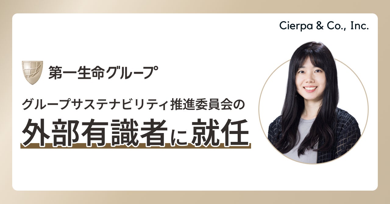 このたび、第一生命グループの「グループサステナビリティ推進委員会」の外部有識者に当社取締役CSuOの中久保菜穂が就任し、今後中久保は、同社の「グループサステナビリティ推進委員会」のディスカッションに参加し、ESGの専門家としての知見を活かし助言などを行ってまいります。