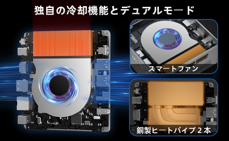 BMAX B5 Pro は、エアフローを促進する大型ファン、より優れた冷却のためのデュアル銅ヒート パイプを備えた新しい冷却モジュールなど、独自の冷却機能を備えています。さらに、BMAX B5 Pro は革新的なデュアル モードも提供します。パフォーマンスモードでは、高速ファンで優れたパフォーマンスを実現できます。 バランスモードでは、BMAX B5 Pro はより静かで、さまざまな環境に溶け込むことができます。