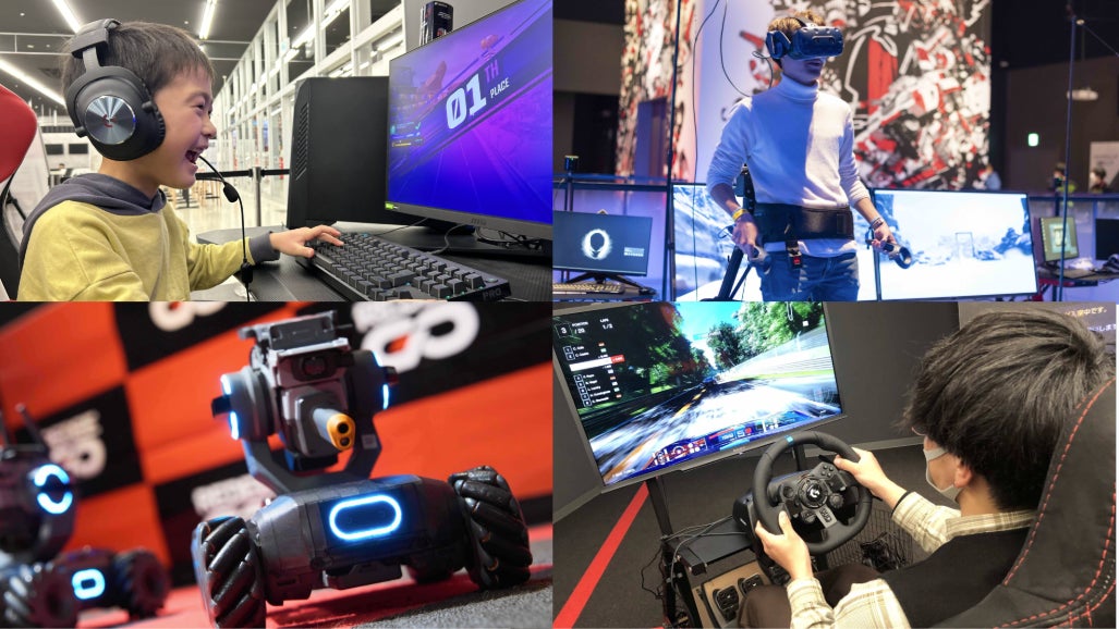 その他にも、お子様に大人気のゲーミングPCを使ったeスポーツエリアや、VR体験、ドローン操縦、eモータースポーツなど、多彩なデジタルコンテンツをご用意しております。1,400㎡超の屋内施設でバーチャルリアリティの世界をぜひご体験ください。
