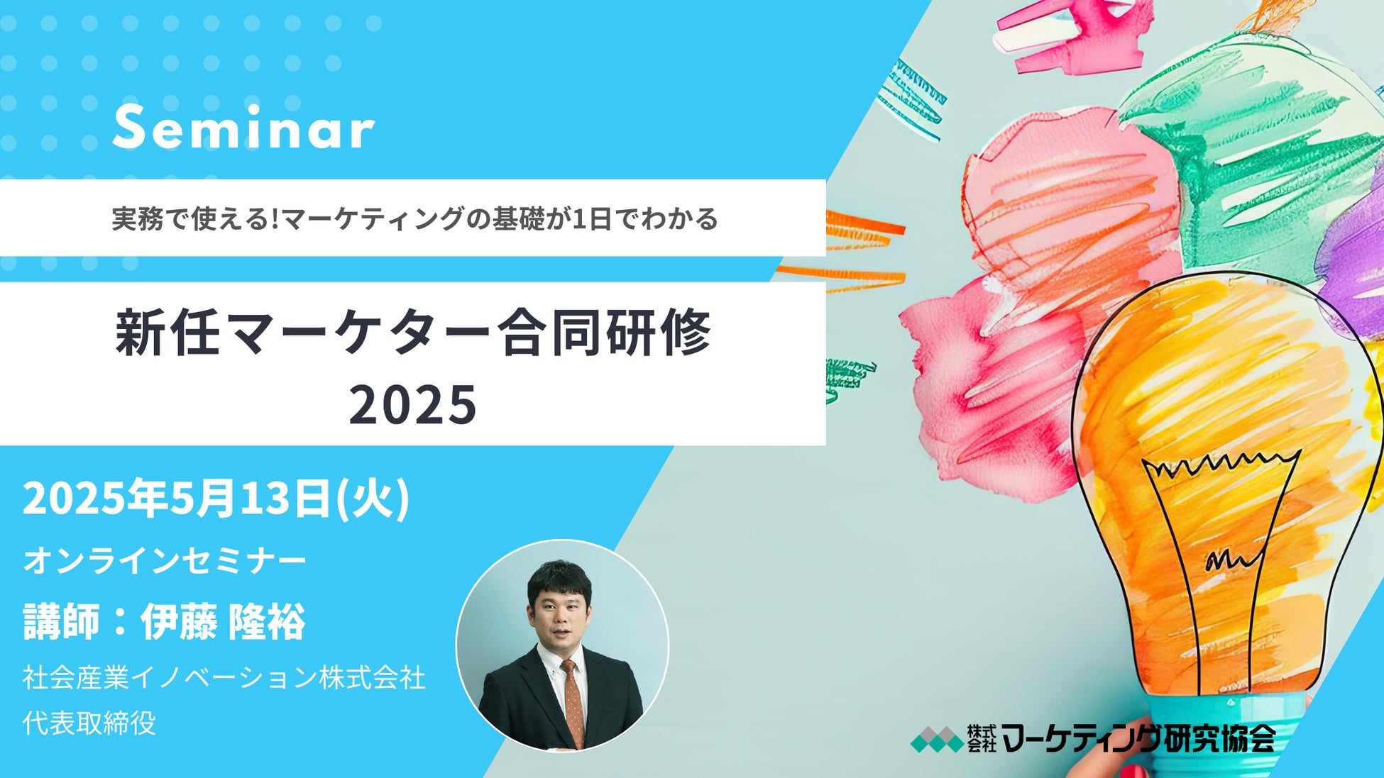 新任マーケター合同講座2025 開催! すべてのビジネスパーソンに向けた業務ですぐに使えるマーケティングの考え方が1日でわかるセミナー 5月13日開催 株式会社マーケティング研究協会