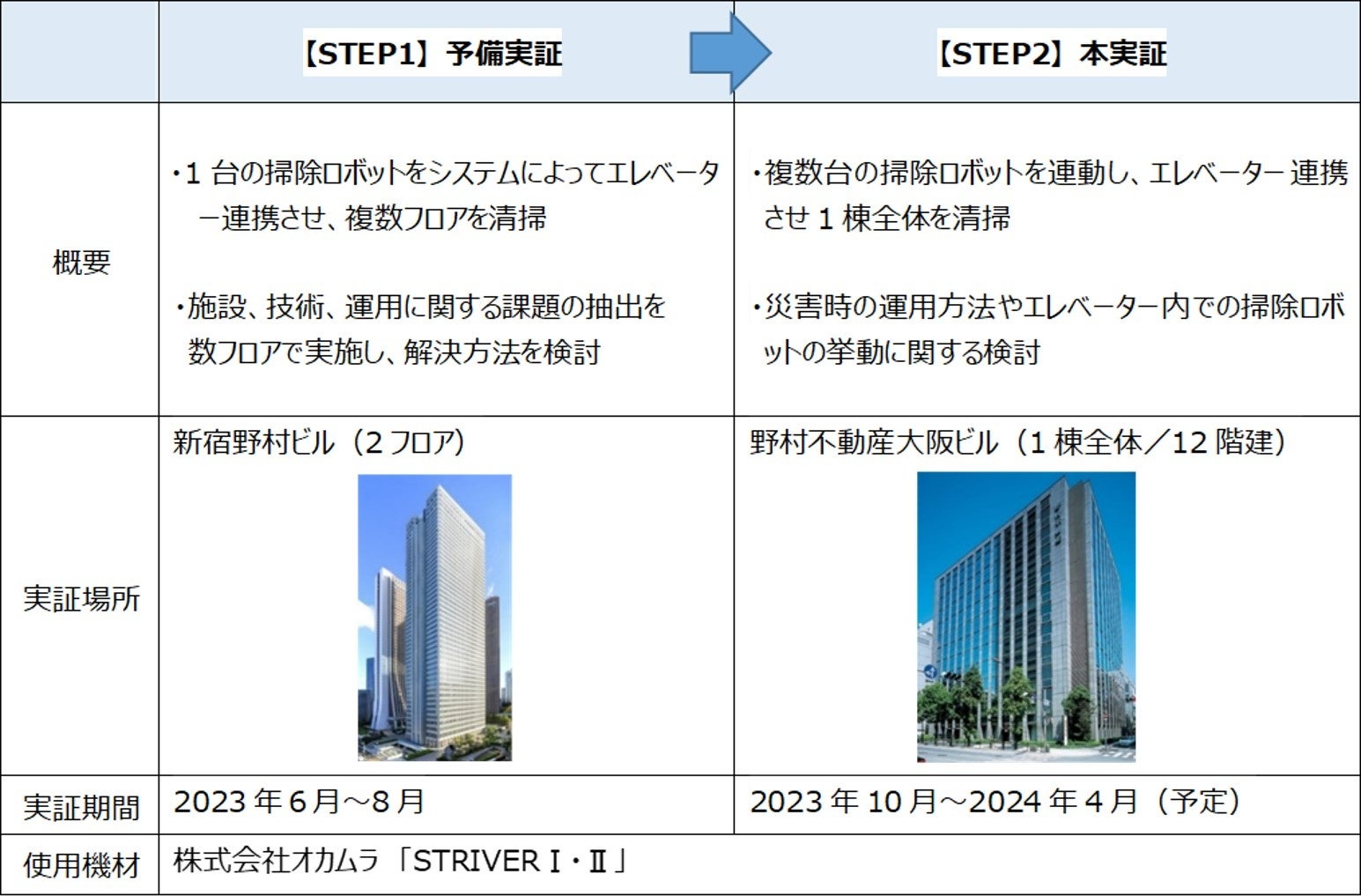 野村不動産グループで清掃管理業務を行う野村不動産アメニティサービス株式会社(本社:東京都新宿区、代表取締役社長:遠藤 郷史、以下野村不動産AMS)では、掃除ロボットを活用した清掃業務を一部のオフィスビルにて実施しておりますが、掃除ロボットが自律移動してオフィスビル1棟全体の清掃業務を行うには、「走破性能」、「清掃性能」、「エレベーターや防火扉等との設備連携」等の複数の課題がありました。このような課題を解決し、清掃サービスの品質向上と業務効率化をすべく、この度の共同実証実験に至りました。