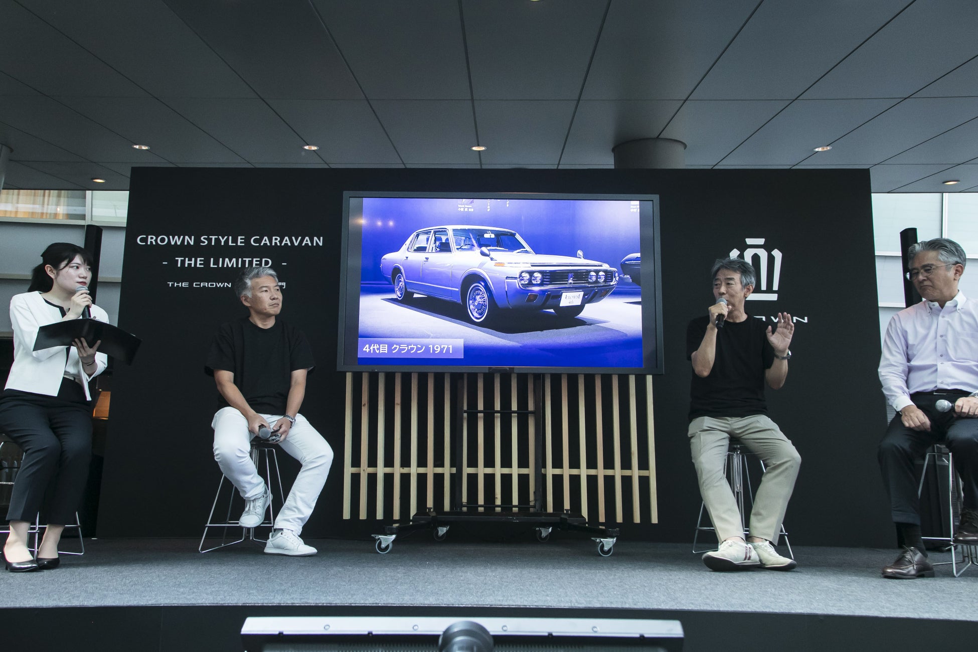 1955年、初代クラウンを発表した東京虎ノ門でTHE CROWN東京虎ノ門が開業するにあたり、初代から受け継がれるクラウンのDNA「革新と挑戦」の元、約70年間のクラウンの変遷と共に、歴代から受け継ぐ「クラウンらしさ」を尊重しながら生まれた16代目クラウン。歴代のクラウンからインスパイアを受けて誕生した16代目クラウンのエピソードなど、ここでしか聞けない開発秘話について語りました。クラウンの「革新と挑戦」でもある、クラウン専門店でのこれまでにない特別なクラウンブランド体験への挑戦や「THE LIMITED MATTE-METAL」が持つクラウンの新しい個性を実現するにあたっての苦労話などクラウンブランドの可能性の広がりを感じる内容となった。