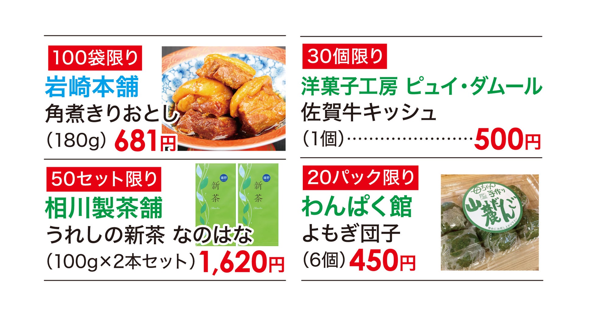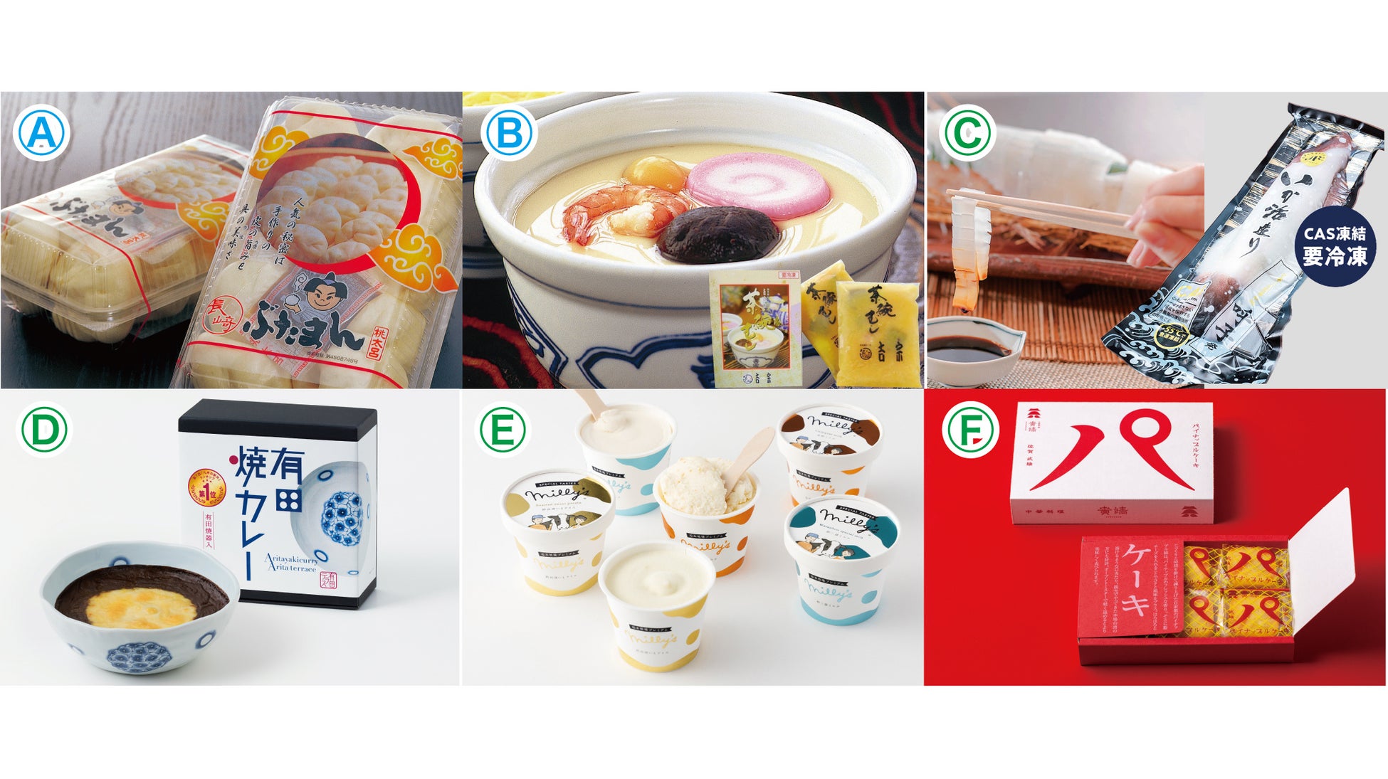 肥前(佐賀・長崎)の風土が育んだ自慢の逸品が大集合。佐賀牛サーロイン、特選本マグロ、極上ウナギ、剣先イカなど厳選された地元の食材を活かした名産品が盛りだくさん。