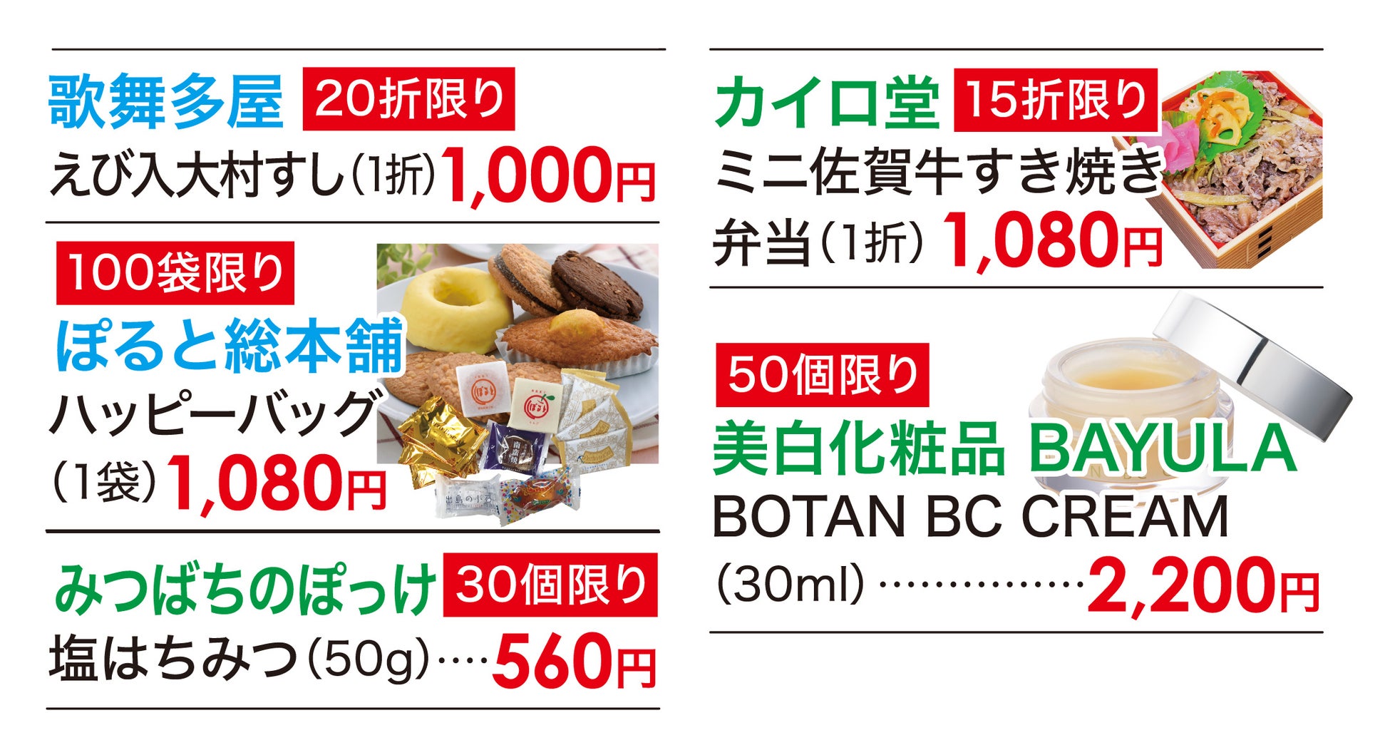 佐賀・長崎の風土が育んだ、自慢の逸品をご堪能いただける本物産展。両県の名店から届く海産物、スイーツ、惣菜、伝統工芸品など、バラエティに富んだ肥前(佐賀・長崎)の味覚と技をお楽しみいただけます。特に注目は地元の食材を活かした「実演弁当」。佐賀牛サーロインステーキすき焼き弁当や極上ウナギ蒲焼き、本マグロ重など、肥前の豊かさを感じられる逸品ばかりです。そして毎日変わる「数量限定日替り奉仕品」も見逃せません。期間中の特別奉仕品も多数ご用意し、佐賀・長崎の美味をお楽しみいただけます。