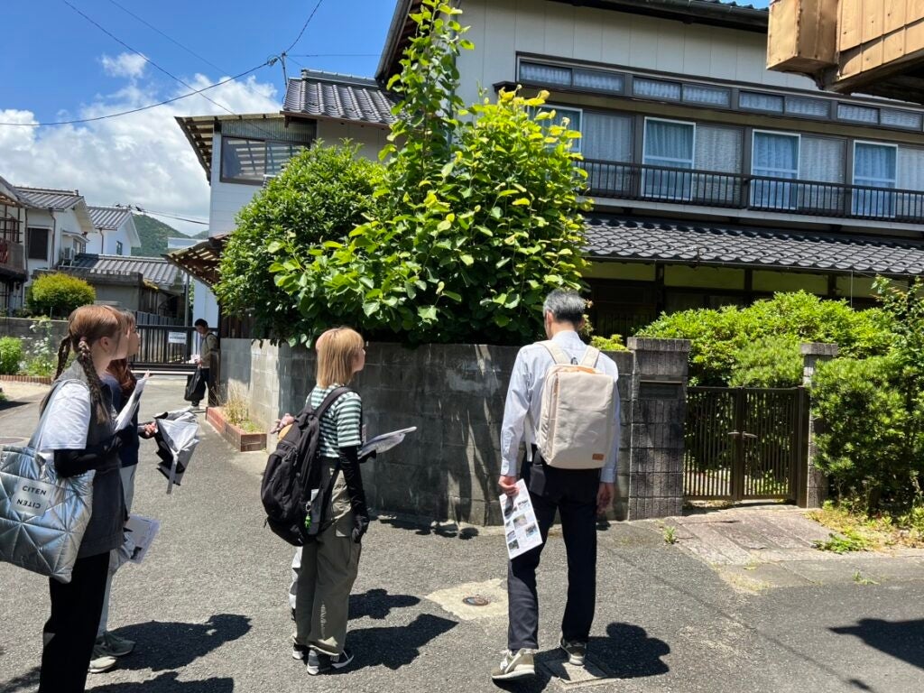 6月には大殿地区でフィールドワークを行い、昨年度の活動で決まった場所周辺の空気感などを感じてもらいました。そこでは、「1階を交流拠点とし、2階は留学生の居住スペースに」「住んでいる留学生と地域の人が交流できる場としてカフェや塾をやってみては」など、様々な意見が出ました。