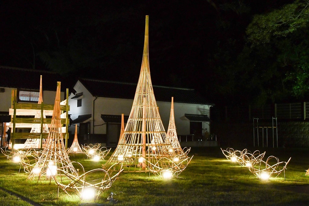 日本遺産構成文化財である岡部宿大旅籠柏屋と内野本陣史跡広場を、竹のオブジェと光で幻想的に彩ります。市内在住の若手アーティストが企画・運営に携わることで、文化の担い手づくりに繋げます。