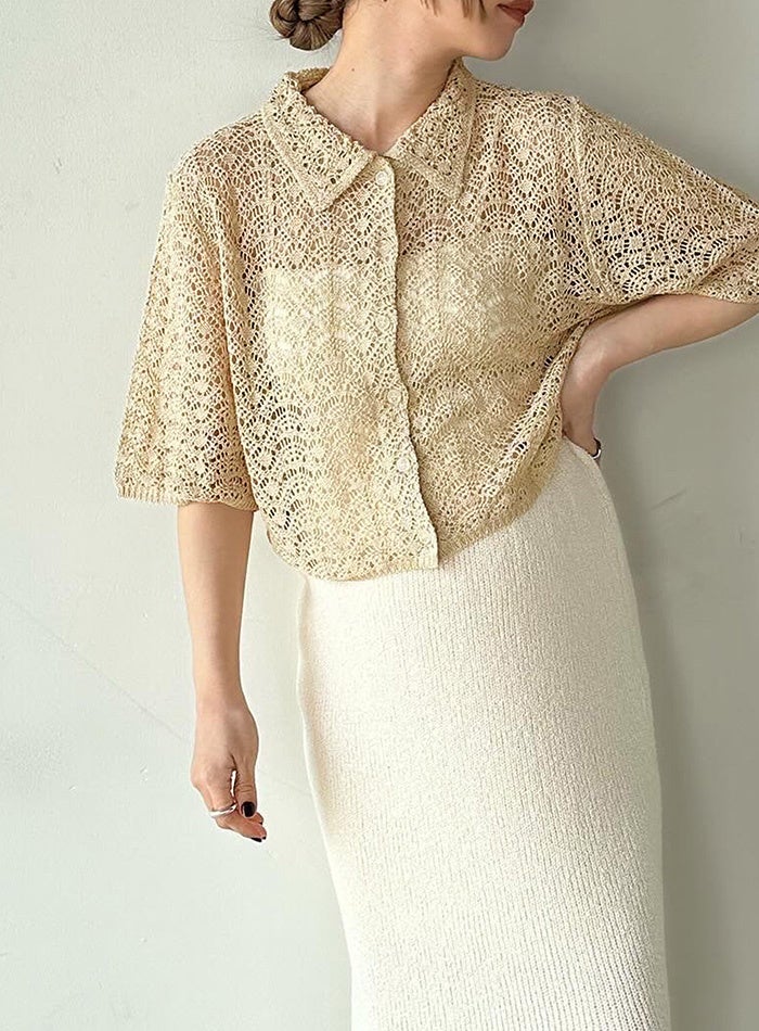レースパターンニットショートカーディガン