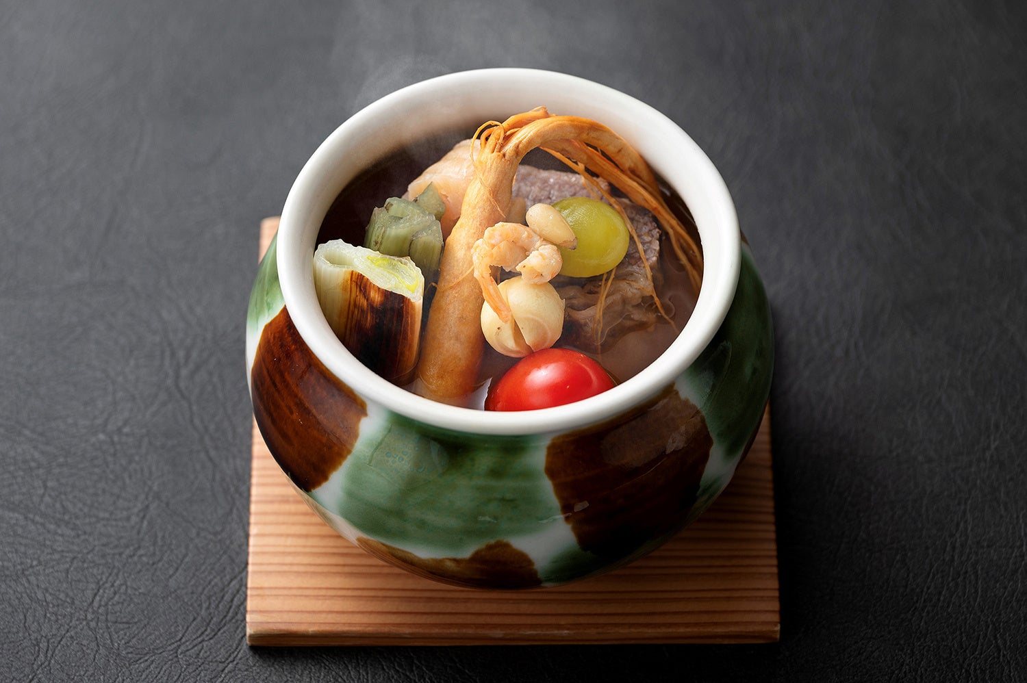 名物の美濃薬膳スープ 奥美濃古地鶏と初登場の飛騨・美濃伝統野菜を加えて