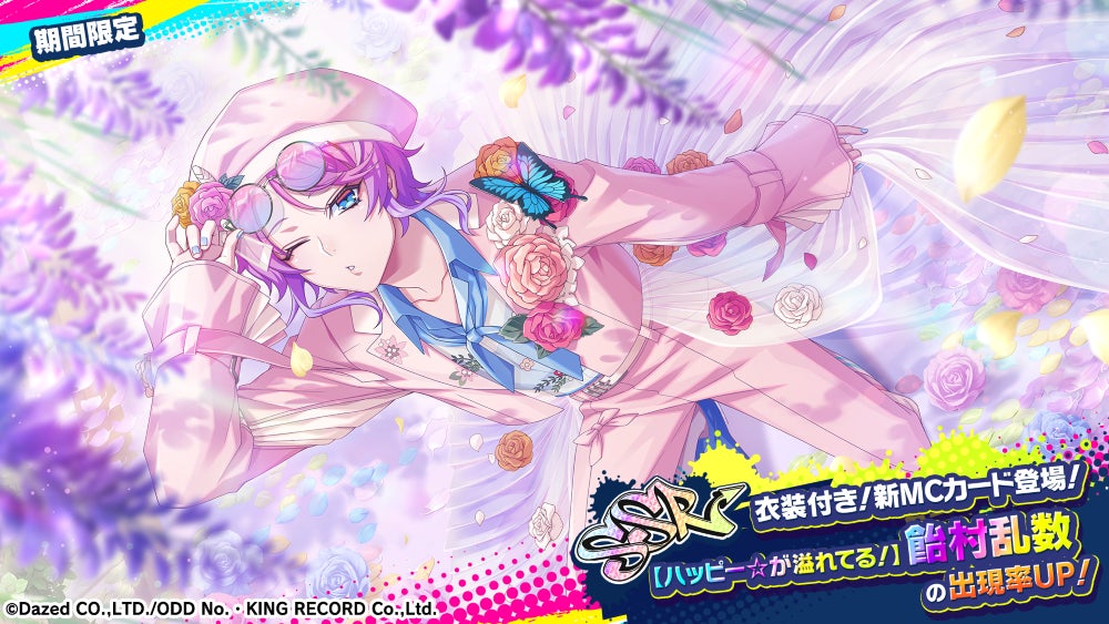 新規カードが3枚追加され、その内の「SSR【ハッピー☆が溢れてる!】飴村乱数」は衣装付き新MCカードとなっています。