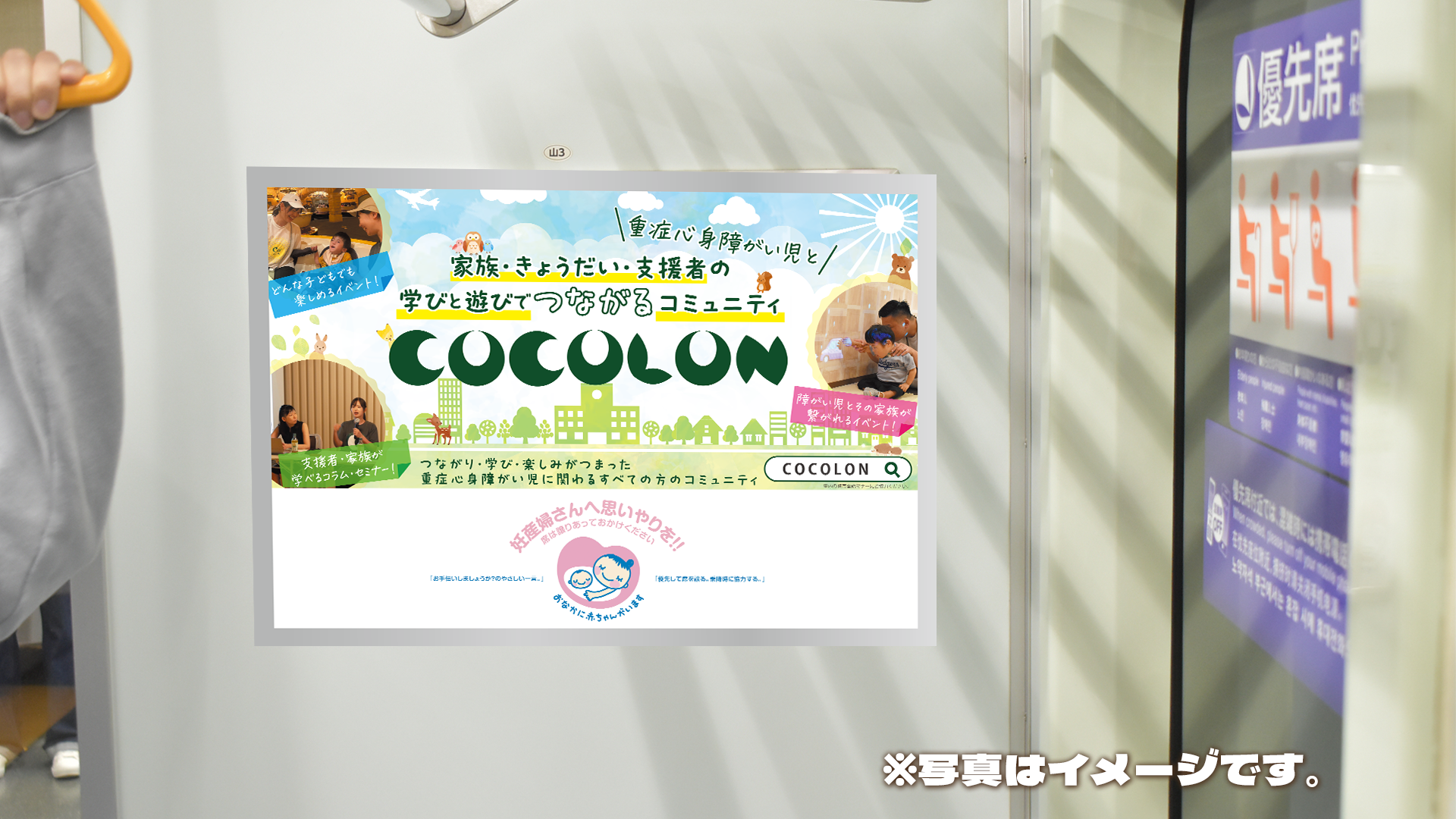 【重症心身障がい児と家族・支援者のコミュニティCOCOLON】都営地下鉄 新宿線にマタニティマークとのタイアップ広告を掲出