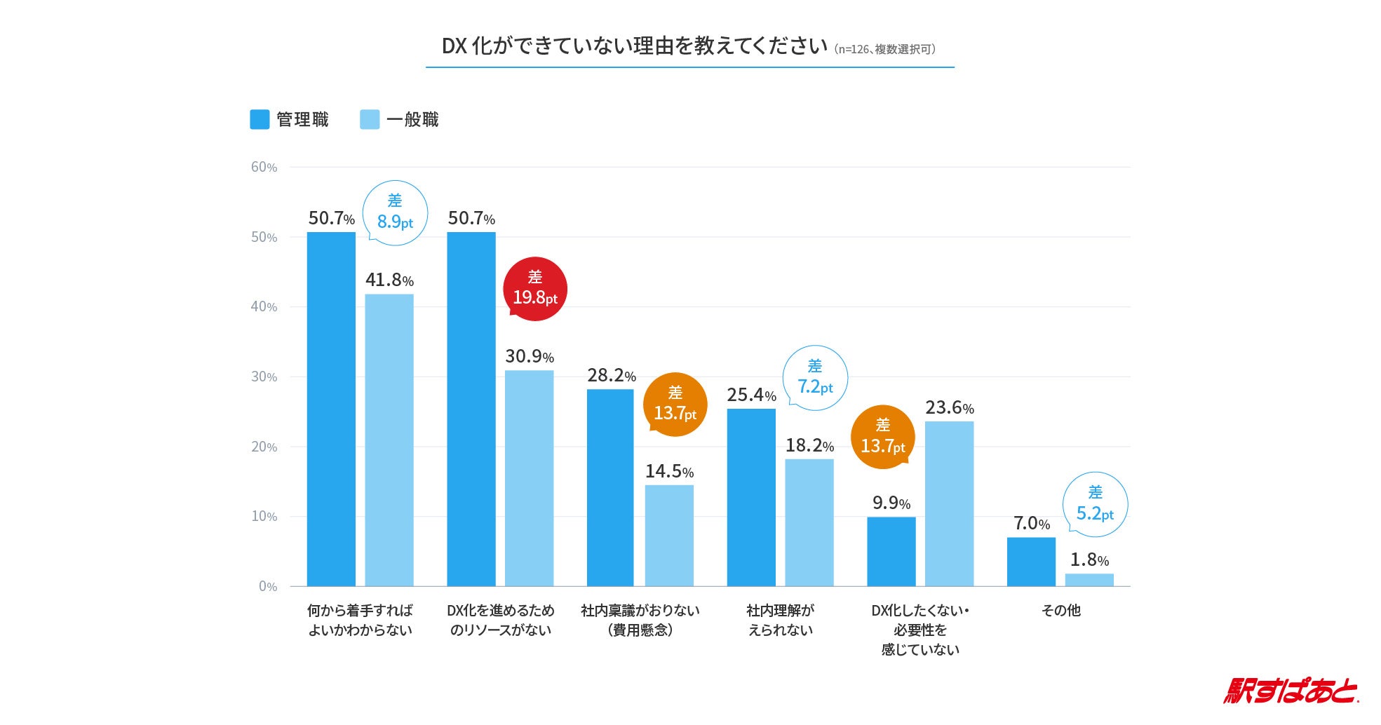 管理職と一般職で「DXができていない理由」に意識の差が明確に