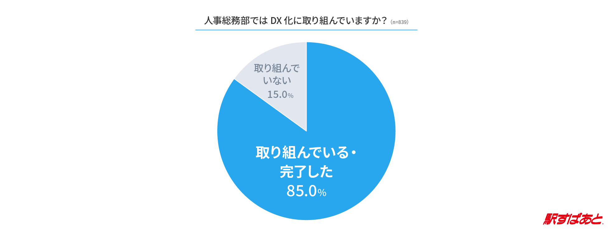 ・人事総務部でDX化に取り組んでいないのはわずか15%のみ