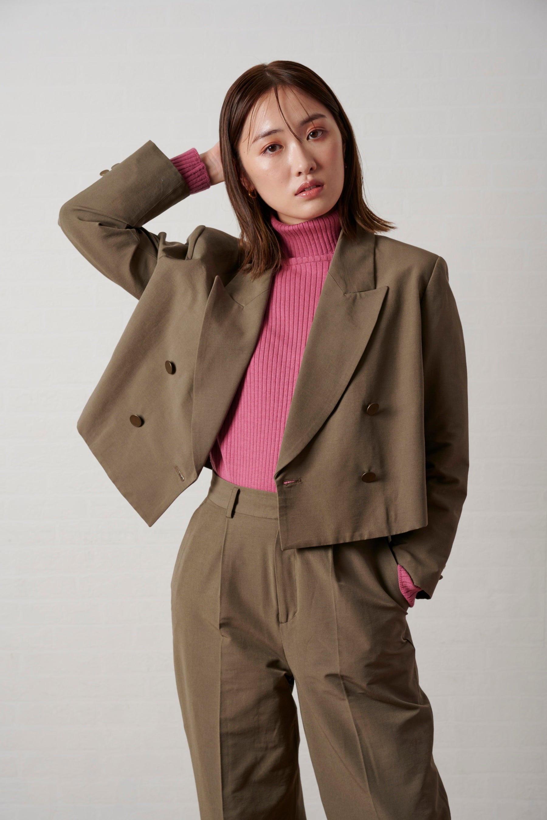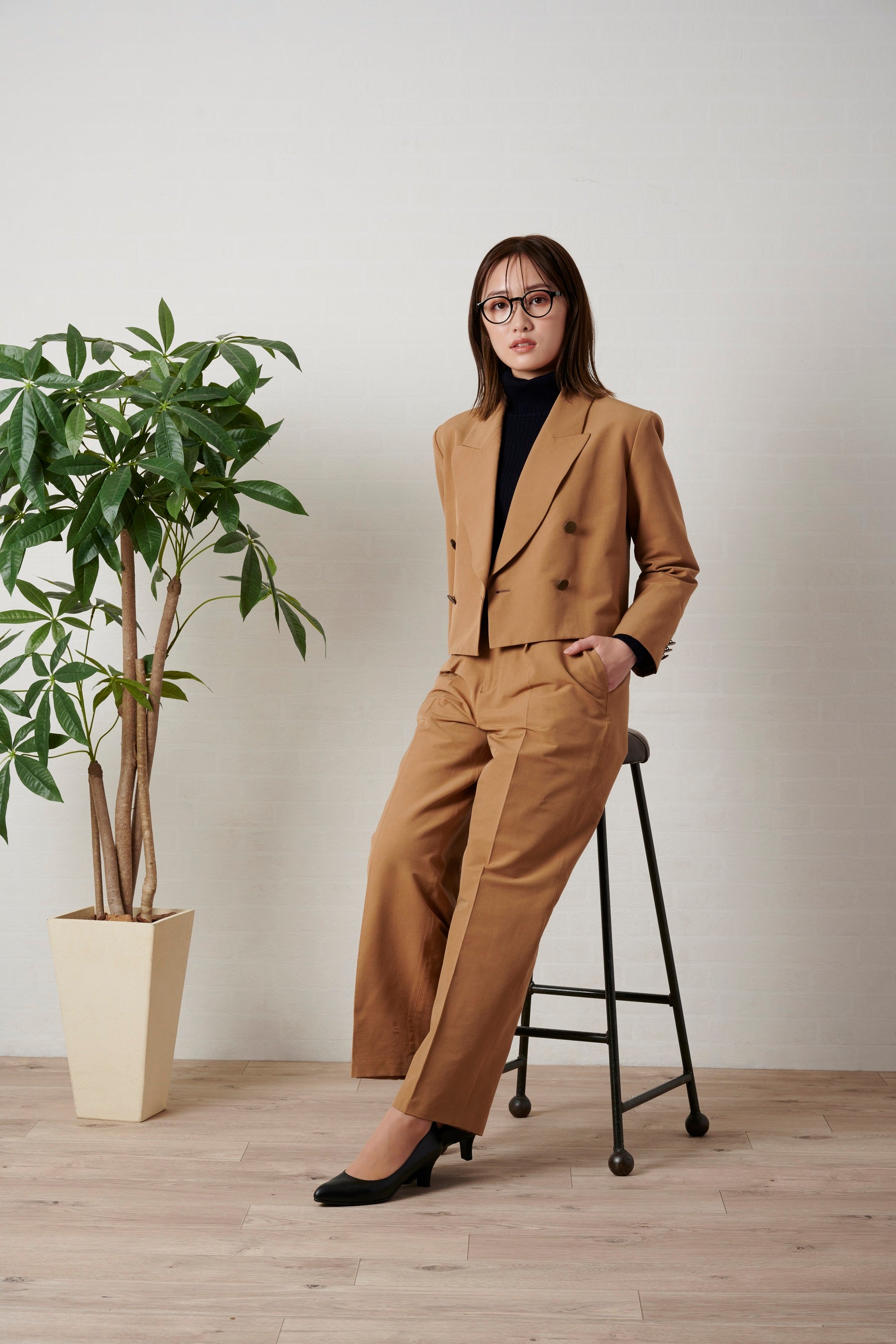 昨今、ライフスタイルの変化とともに、ビジネスシーンにおいてもよりカジュアルな装いが見られるようになりました。そこで今回は、変化する時流を柔軟に受け入れ、自分らしさを大切にするZ世代に向けて、20代からの支持が高く、女優として活躍する工藤遥さんとコラボしました。“自分らしくファッションを遊んで楽しむ”をテーマに、洋服の青山では初となるトレンドのショート丈のセットアップと、コーディネートアイテムとしてタートルネックニットを企画。オンでもオフでも着まわせるような、可愛くてかっこいいスタイリングを形にしました。