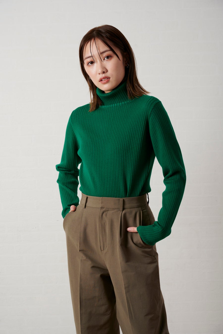 ・生地は厚手すぎないリブニットで、程よいフィット感