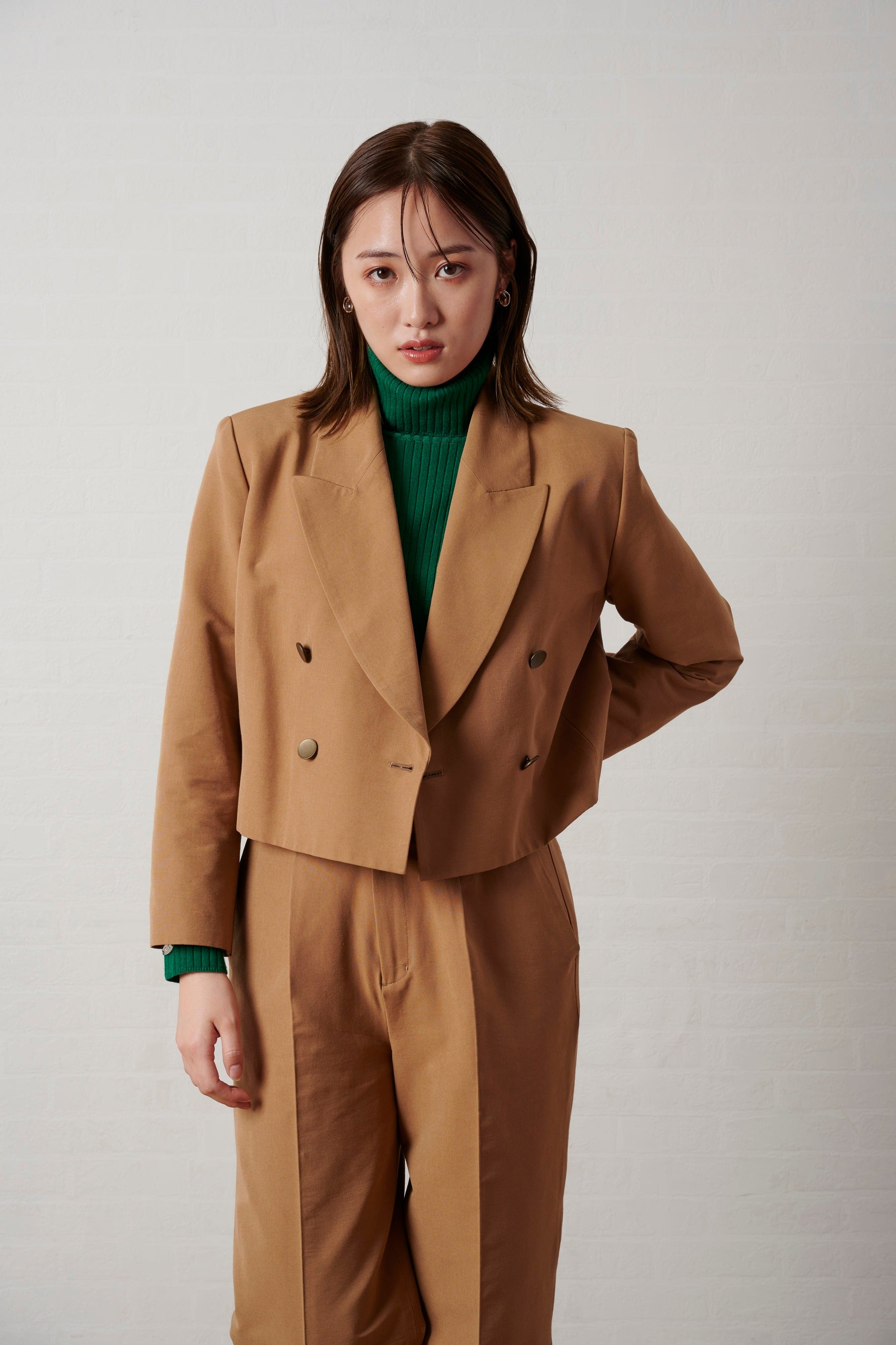ショート丈ジャケット/ハイウエストストレートパンツ