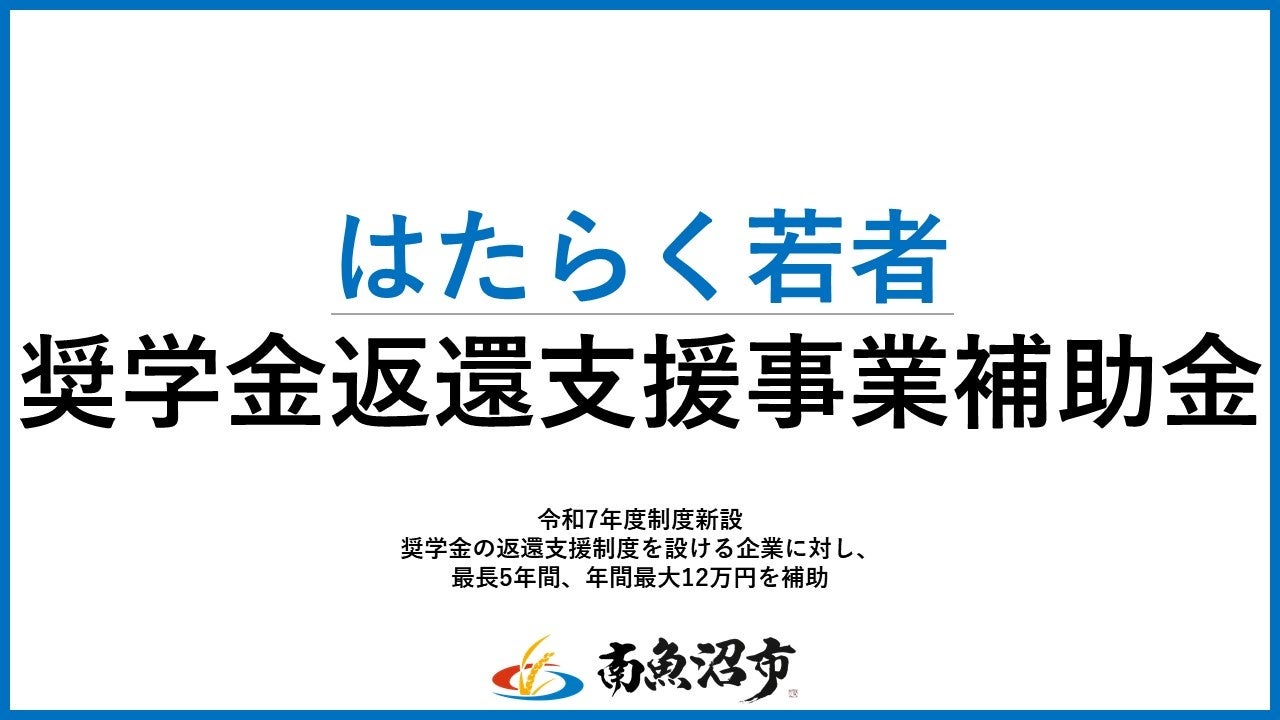 南魚沼市はたらく若者奨学金返還支援事業補助金を新設、募集開始!奨学金の返還支援制度を設ける企業に対し、最長5年間、年間最大12万円を補助!