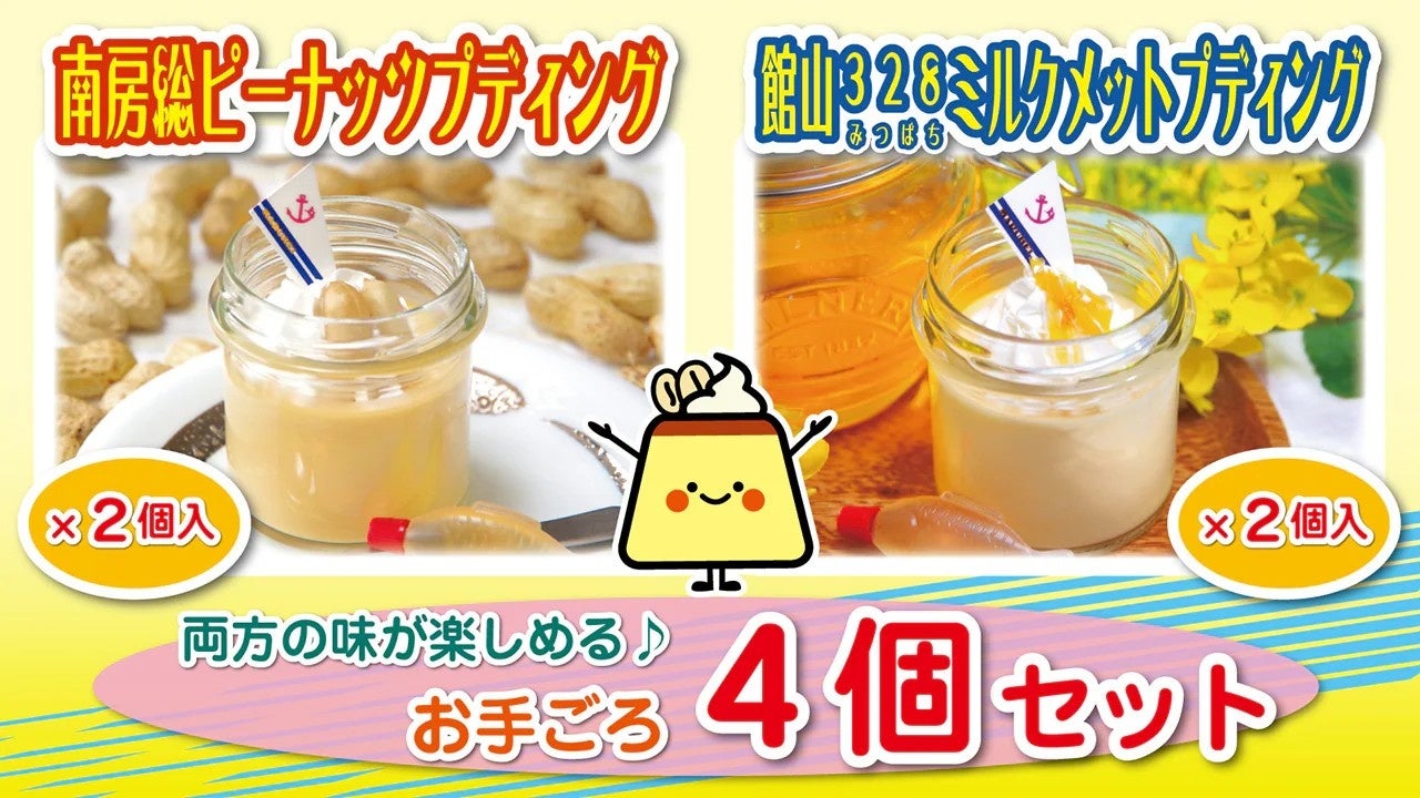 南房総ピーナッツプディング×2個、館山328ミルクメットプディング×2個、合計4個セットの商品です。