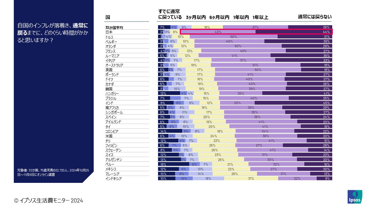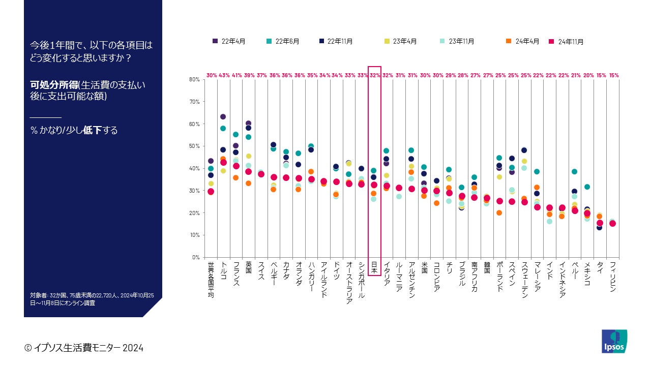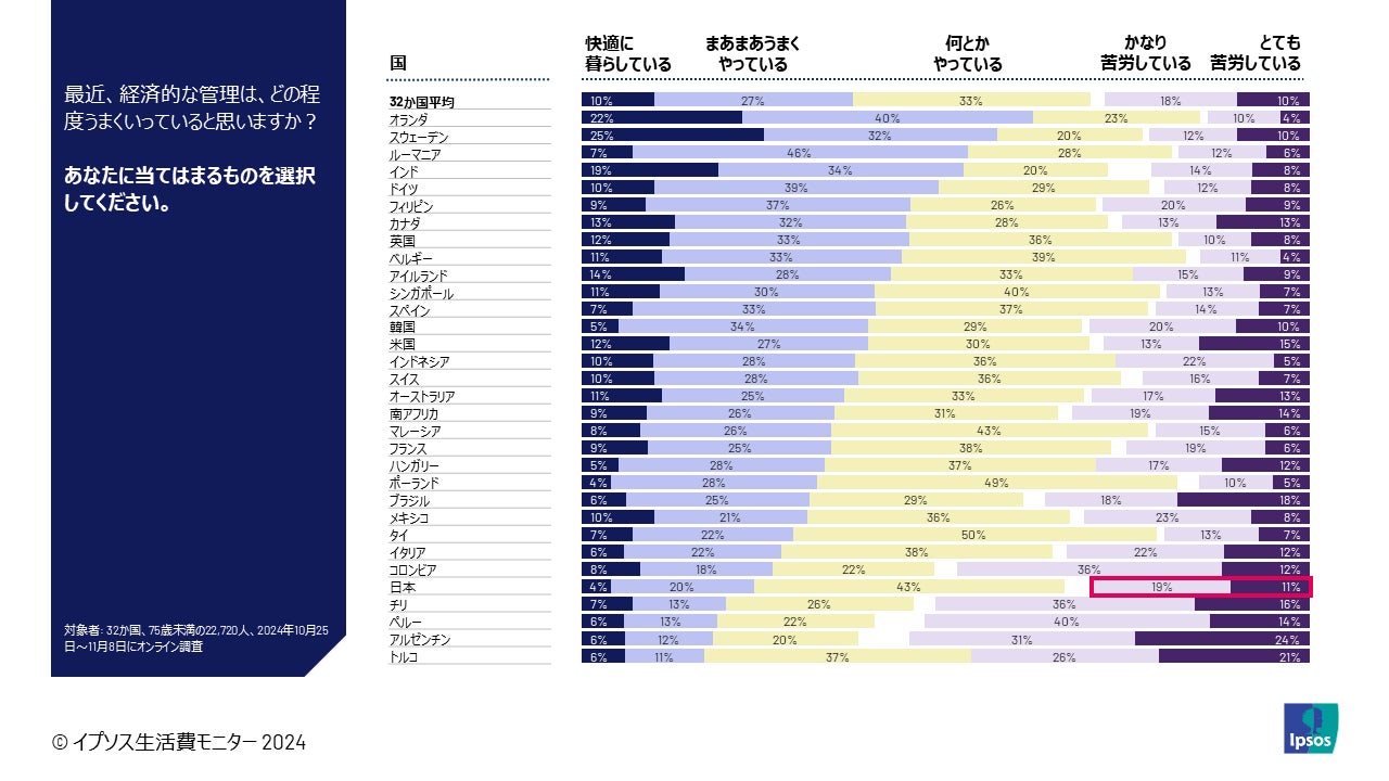 32ヵ国の世界調査、イプソス生活費モニター 2024年11月を発表