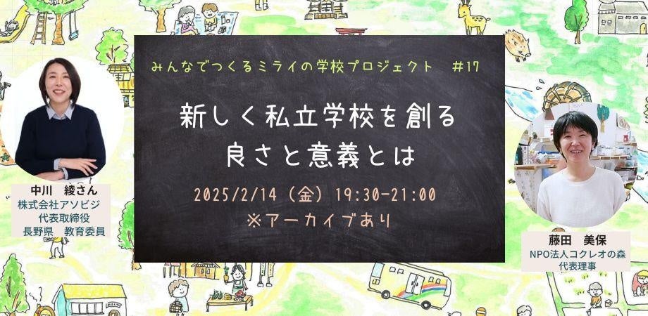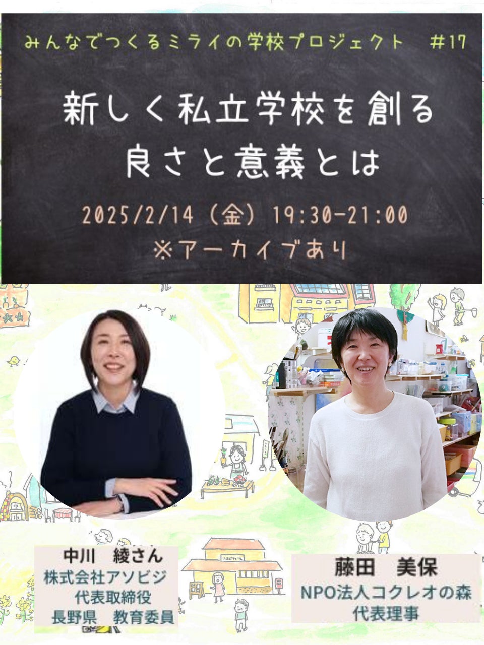 【みんなで創るミライの学校プロジェクト第17回 「新しく私立学校を創る 良さと意義とは」 中川綾さんのお知らせ】