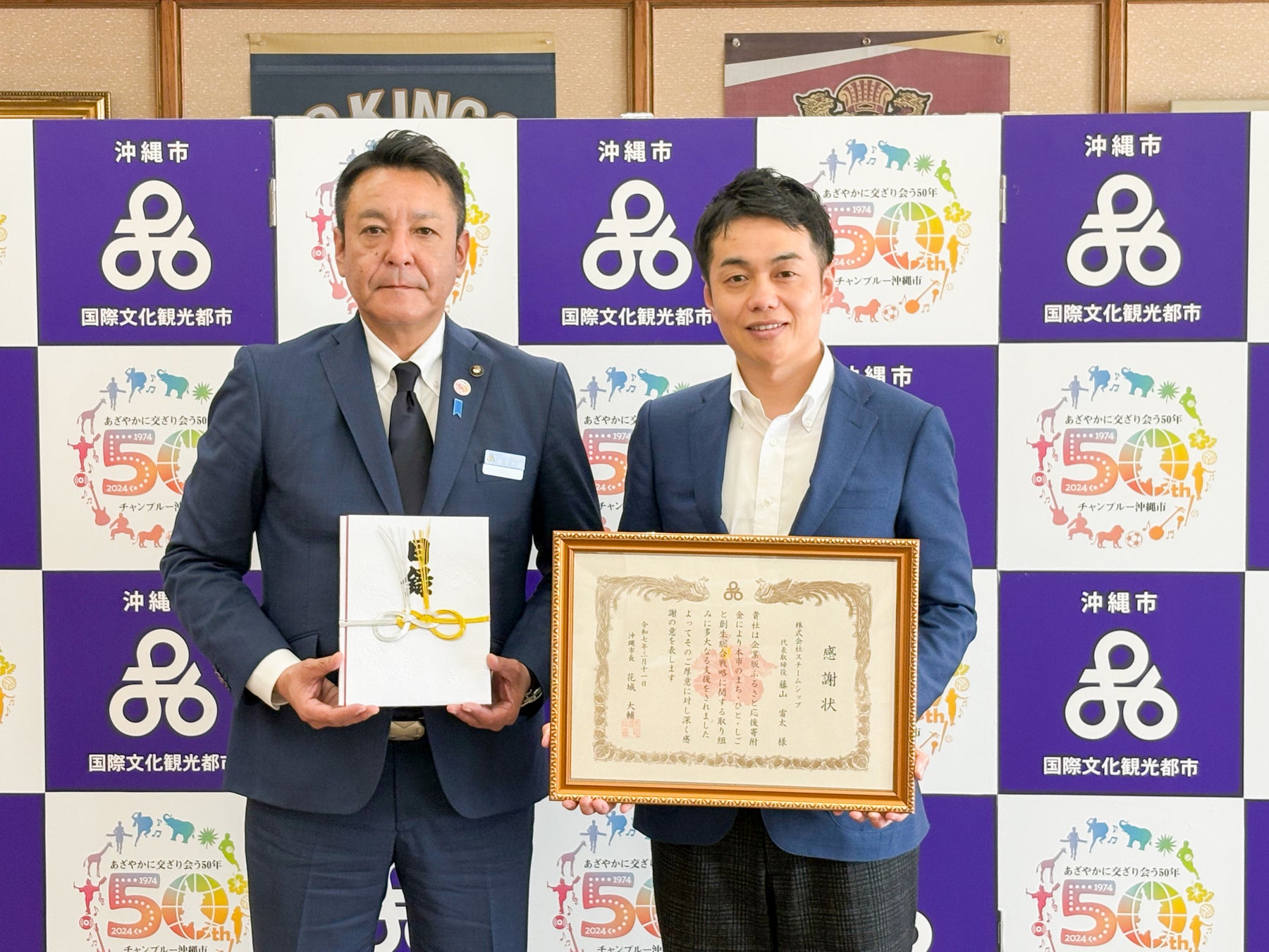 株式会社スチームシップ(本社:長崎県波佐見町折敷瀬郷、代表取締役 藤山雷太 以下 スチームシップ)は、沖縄県沖縄市へ企業版ふるさと納税を活用して寄附を行いました。これを受け、3月11日、沖縄市役所にて感謝状の贈呈式が行われましたのでお知らせいたします。