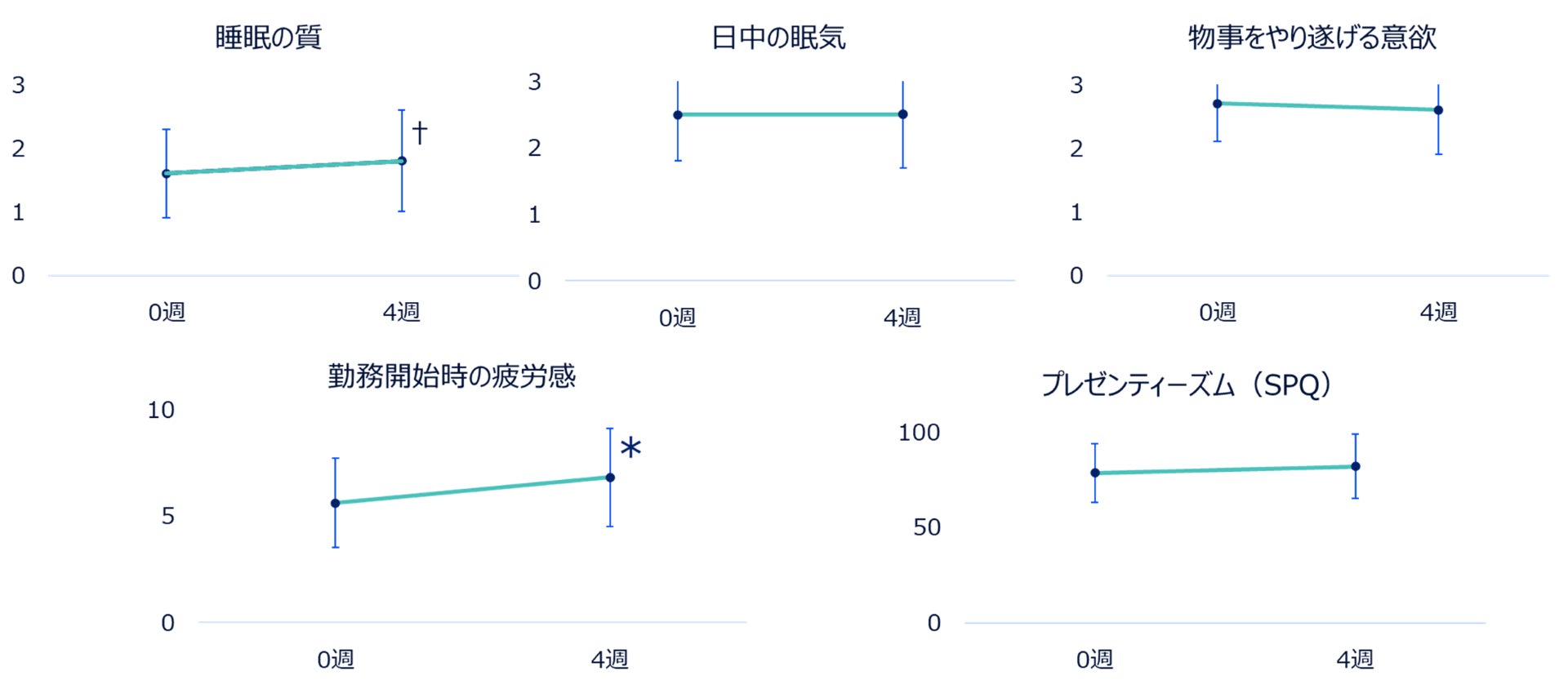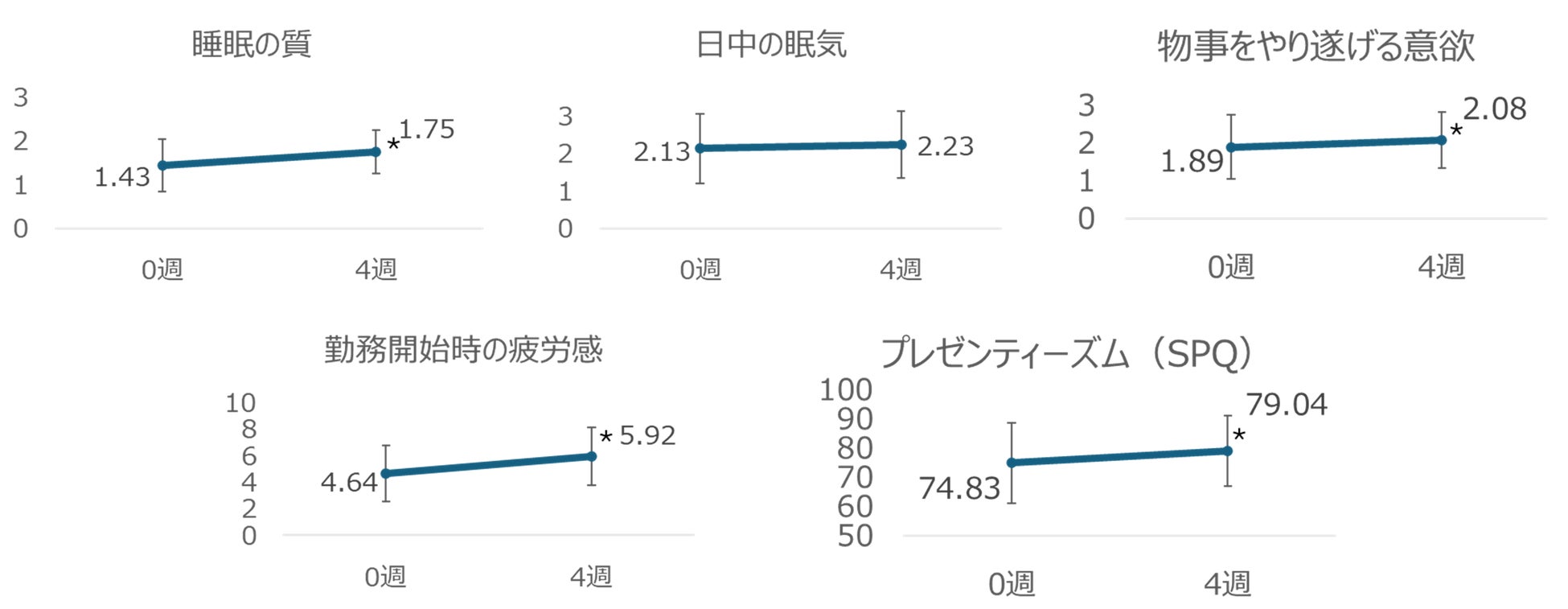 睡眠の質、物事をやり遂げる意欲、プレゼンティーズムなどのスコアが向上