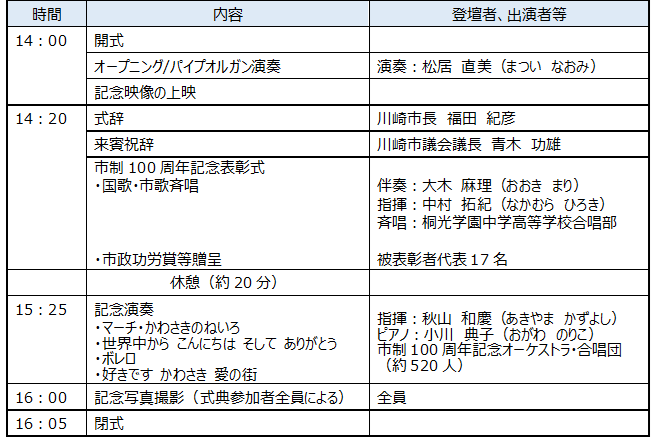 1 川崎市市制100周年記念式典について