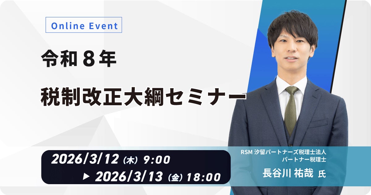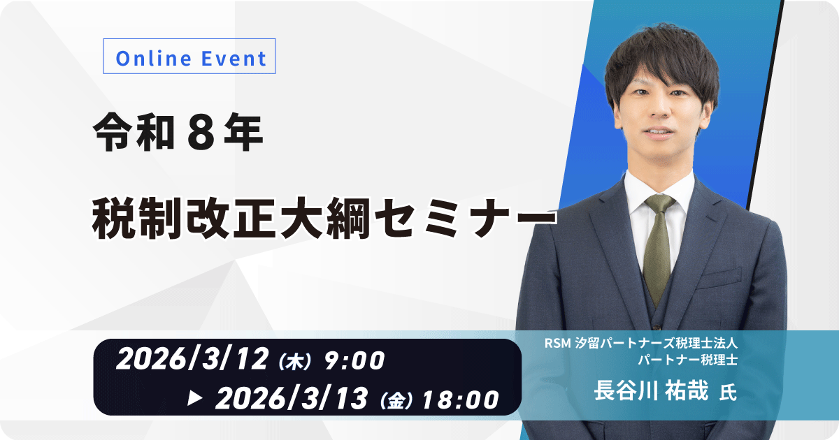 本セミナーでは、企業の経営者・経理担当者・人事総務担当者が押さえておくべき主要ポイントを中心に、RSM汐留パートナーズ税理士法人 パートナー 税理士 長谷川 祐哉 氏を講師に迎え、改正内容の全体像と実務上の影響をわかりやすく解説します。