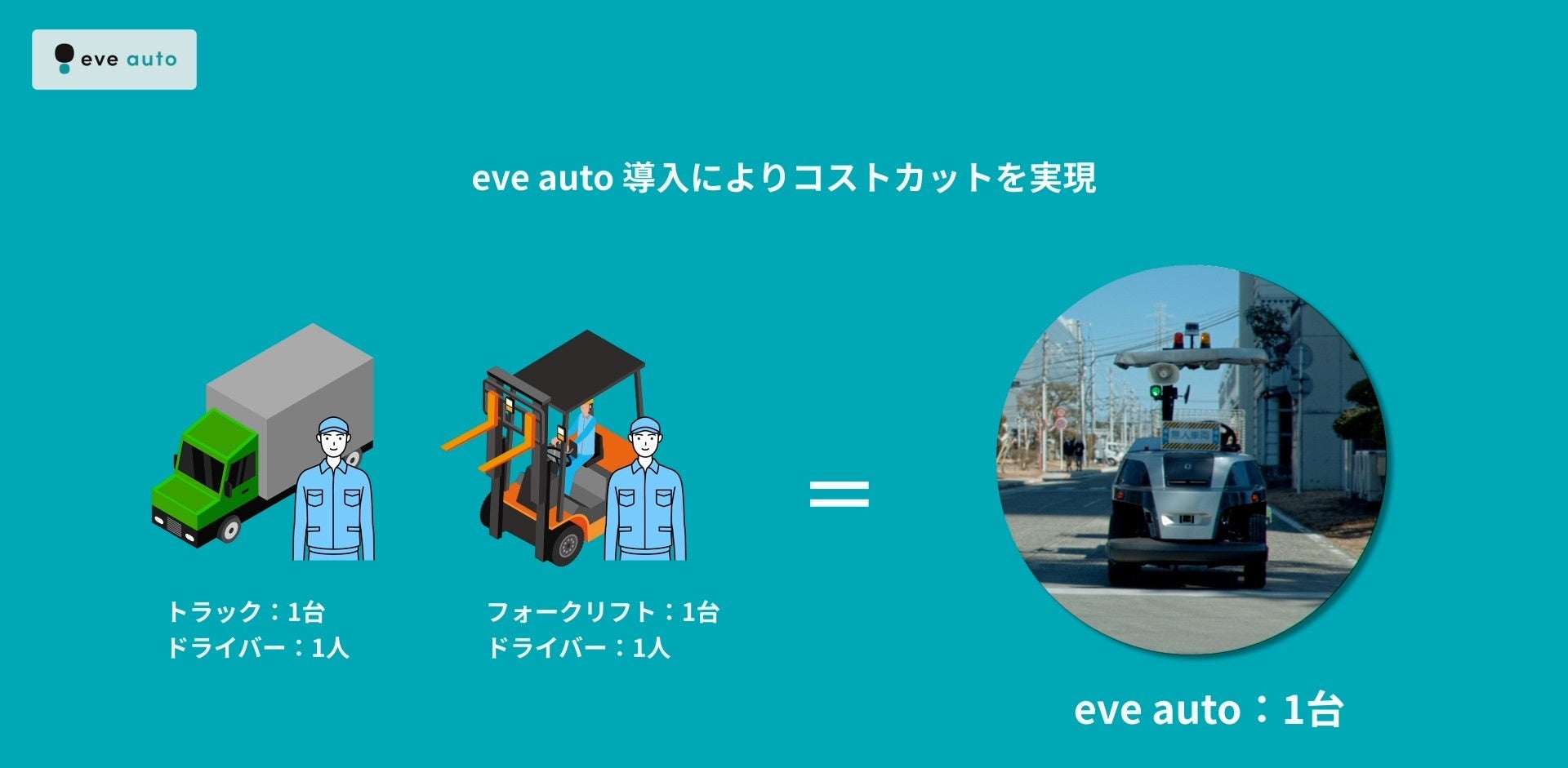 ~『eve auto』1台の導入で、トラック1台・フォークリフト1台分の運用コストを削減~