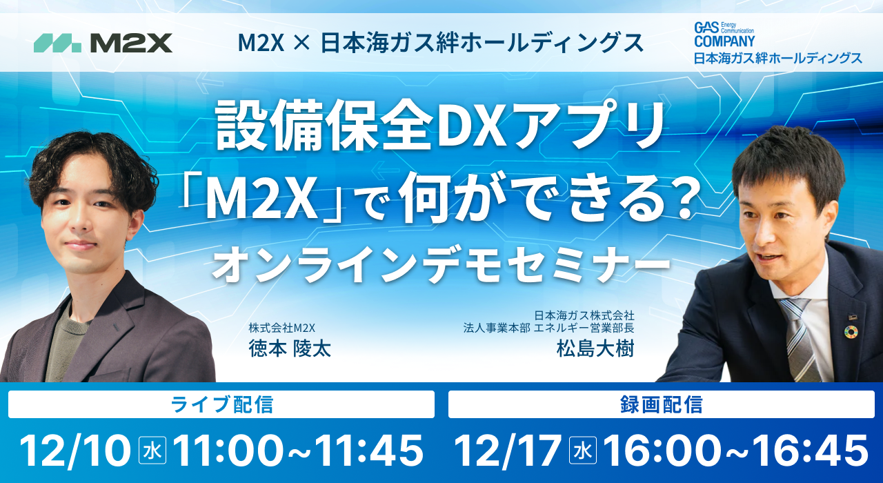 【12/10(水)・12/17(水)】【M2X × 日本海ガス絆ホールディングス共催】設備保全DXアプリ「M2X」で何ができる? オンラインデモセミナー開催