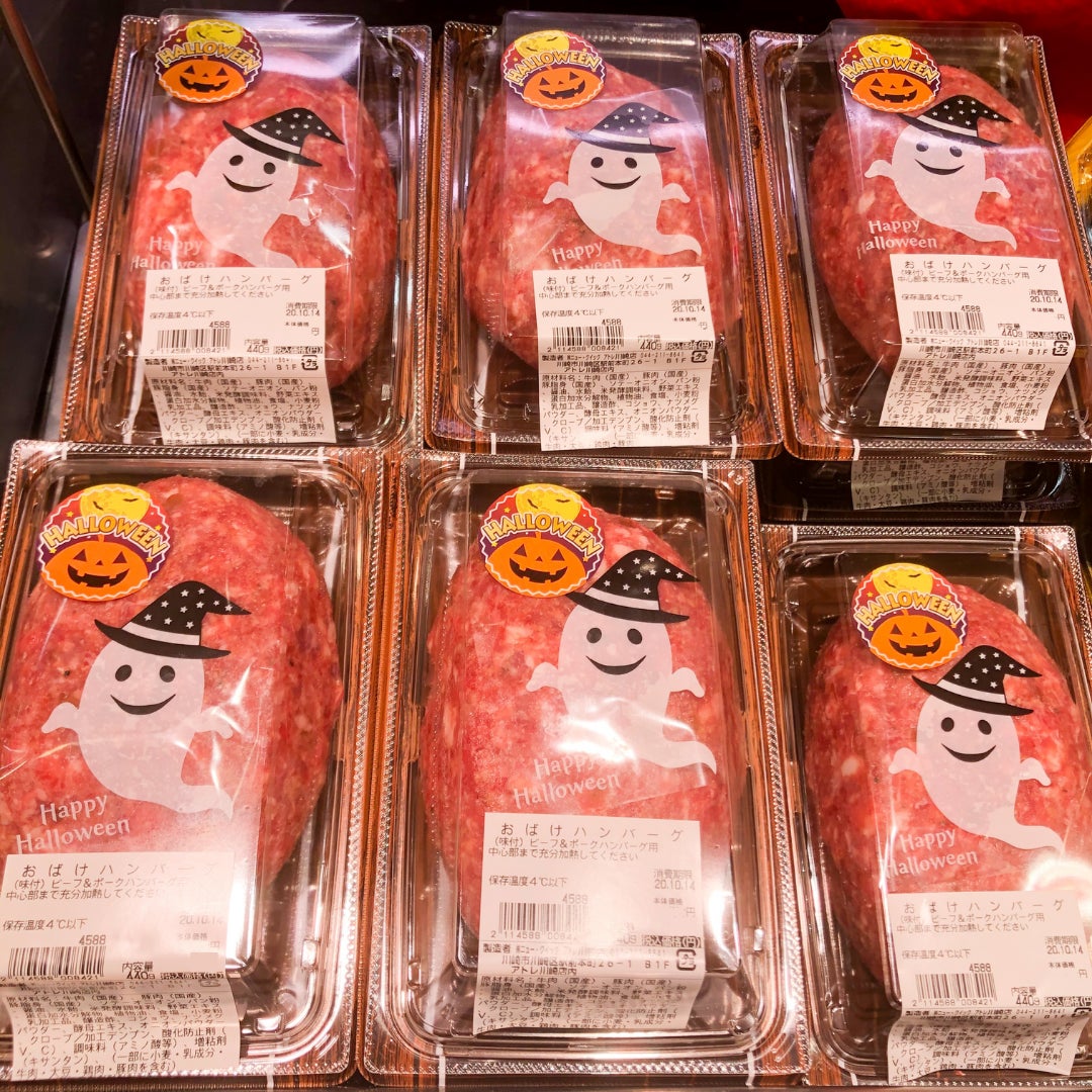 精肉専門店ならではの肉の旨みをぎゅっと詰め込んだ人気の生ハンバーグを、ハロウィン限定で“おばけ仕様”に仕上げました。ビッグサイズのハンバーグは、焼き上げれば肉汁がじゅわっとあふれ出すジューシーな味わい。テーブルに並べれば子どもも大人も思わず歓声が上がる、ハロウィンの食卓を彩る遊び心たっぷりの一品です。