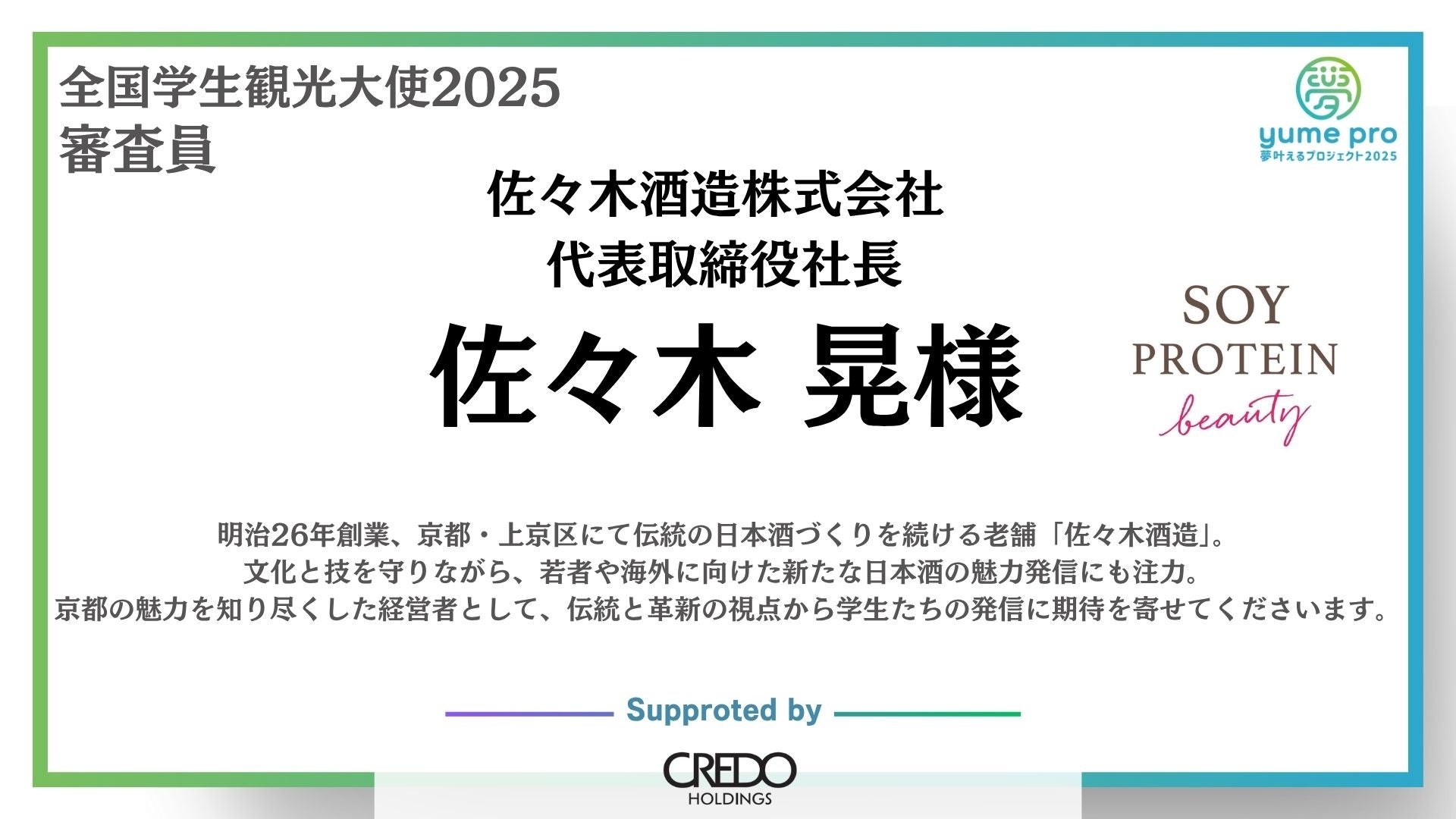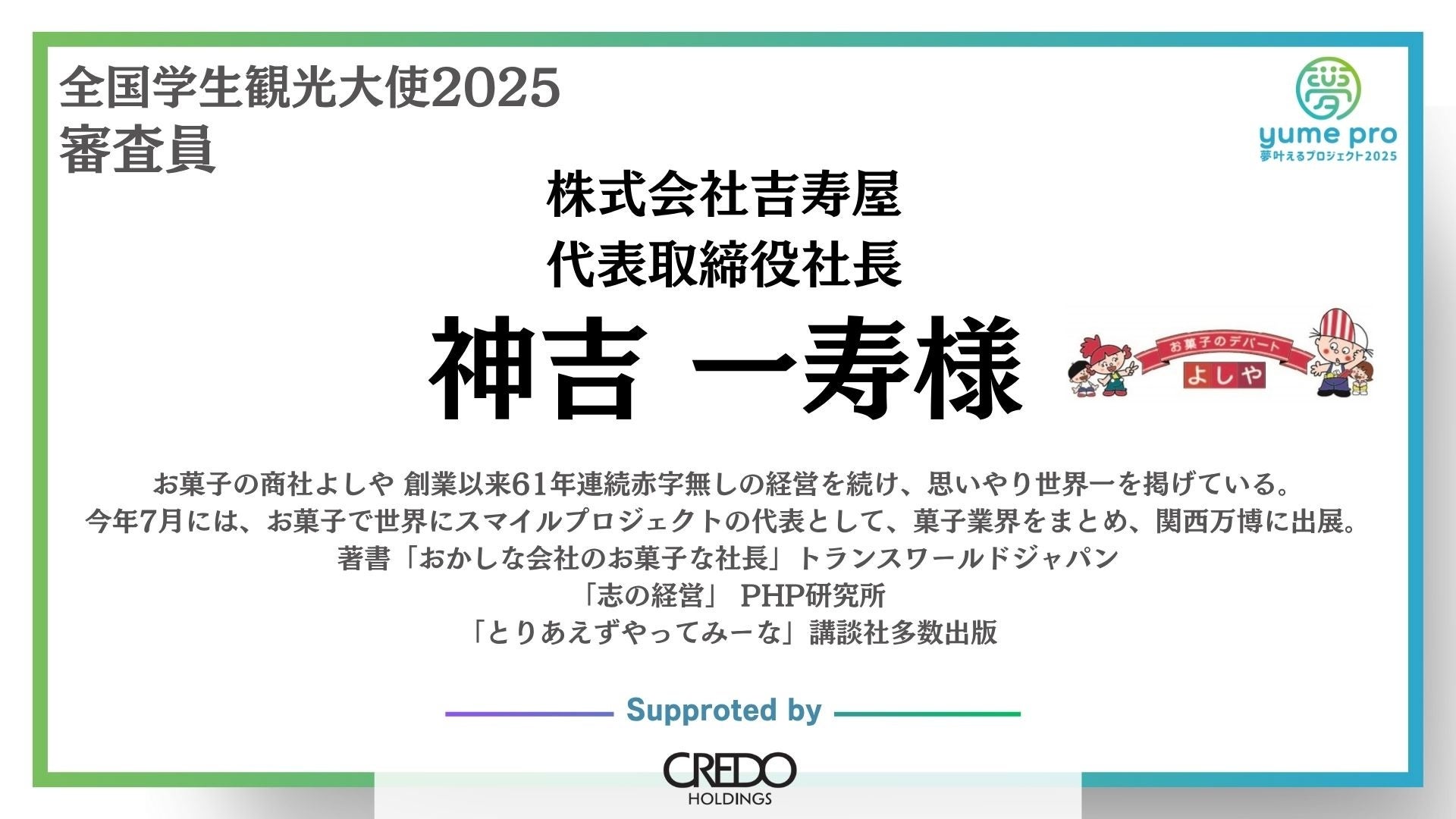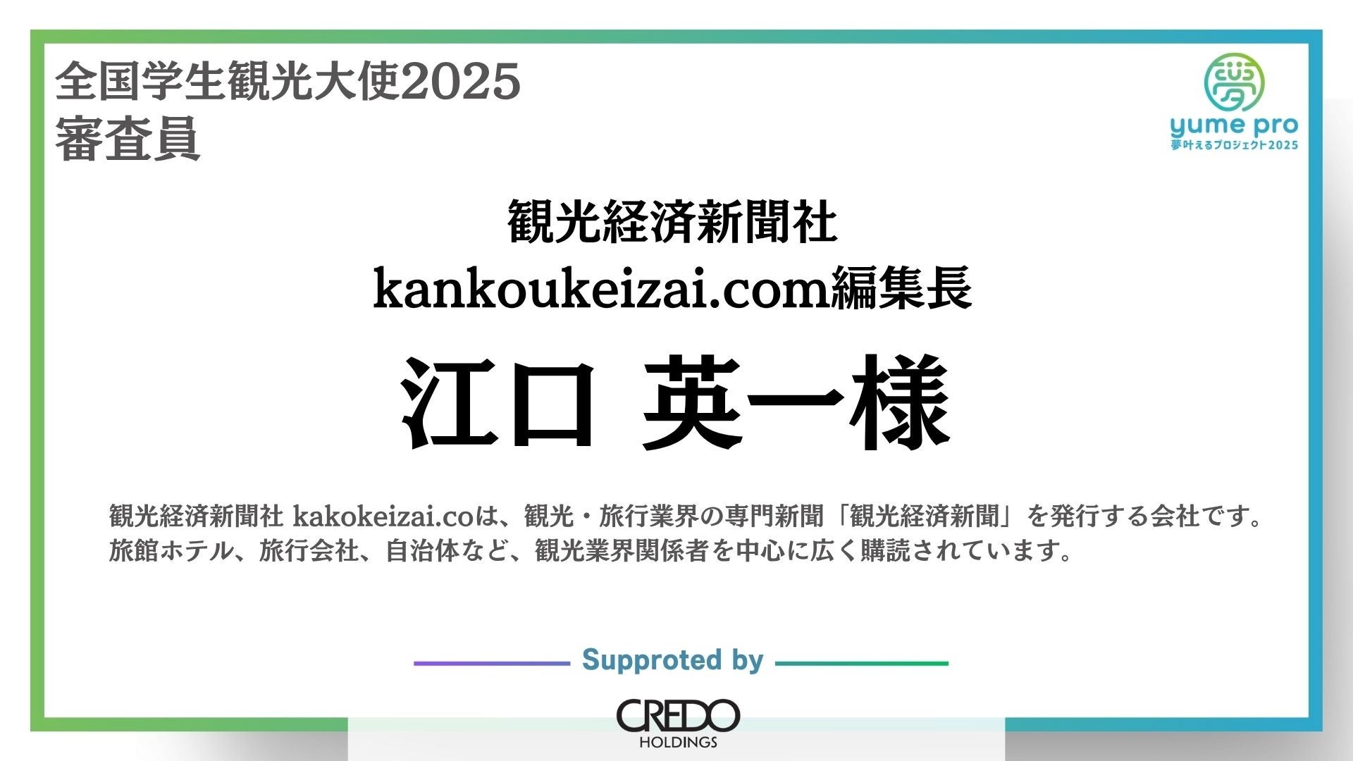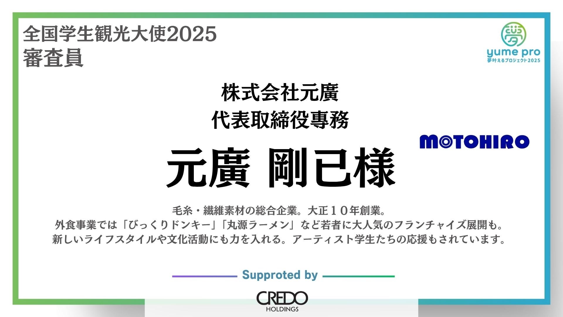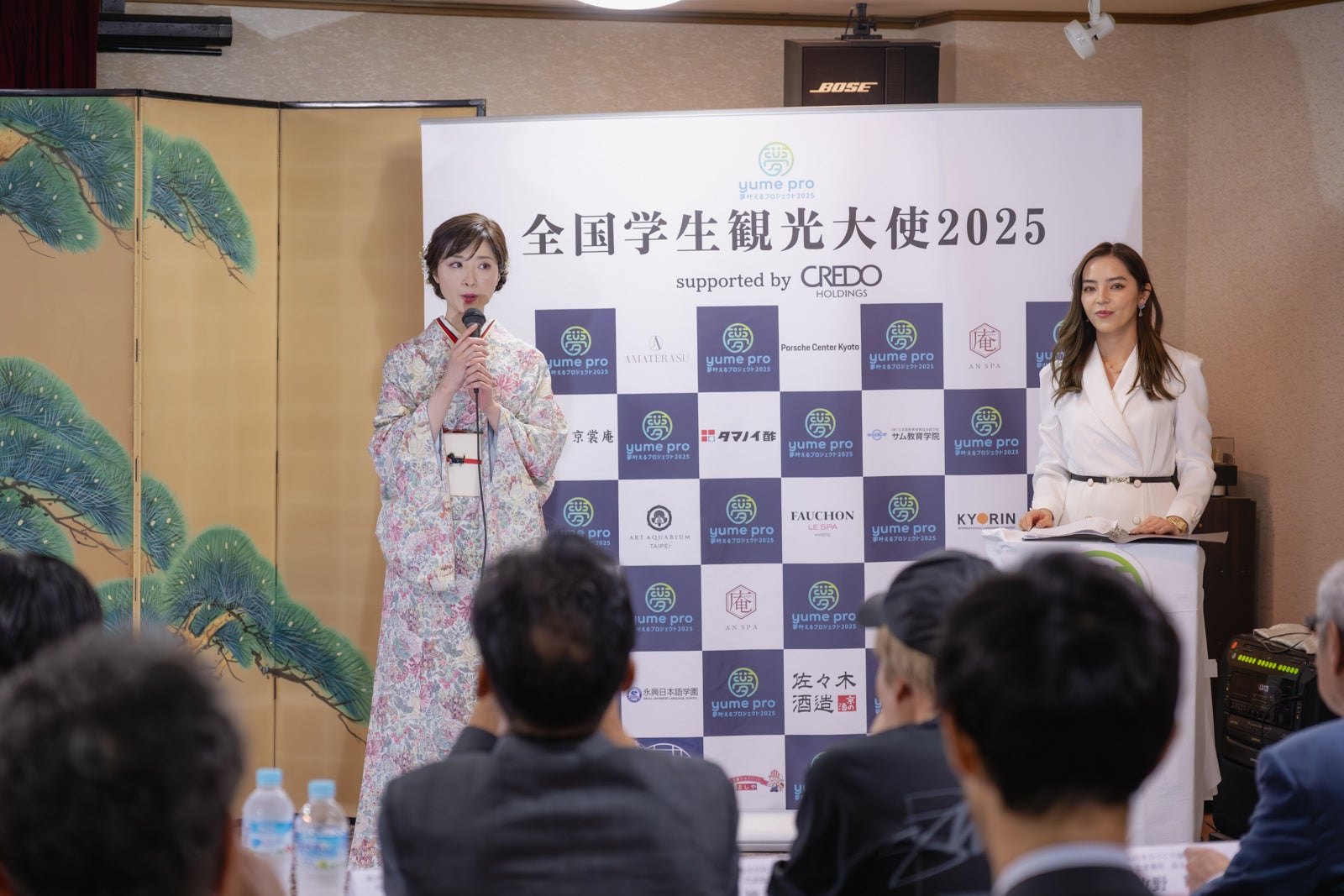 「全国学生観光大使」は、日本全国の学生が観光をテーマに地域の魅力を発信し、地域振興と次世代リーダーの育成を目的としたYUME PRO 2025の中核プロジェクトです。本年は、ライブ配信プラットフォーム「ミクチャ」での動画審査を経て、全国から選抜されたファイナリストたちが京都に集結し、審査員と観客の前で熱意あふれるプレゼンテーションを披露しました。